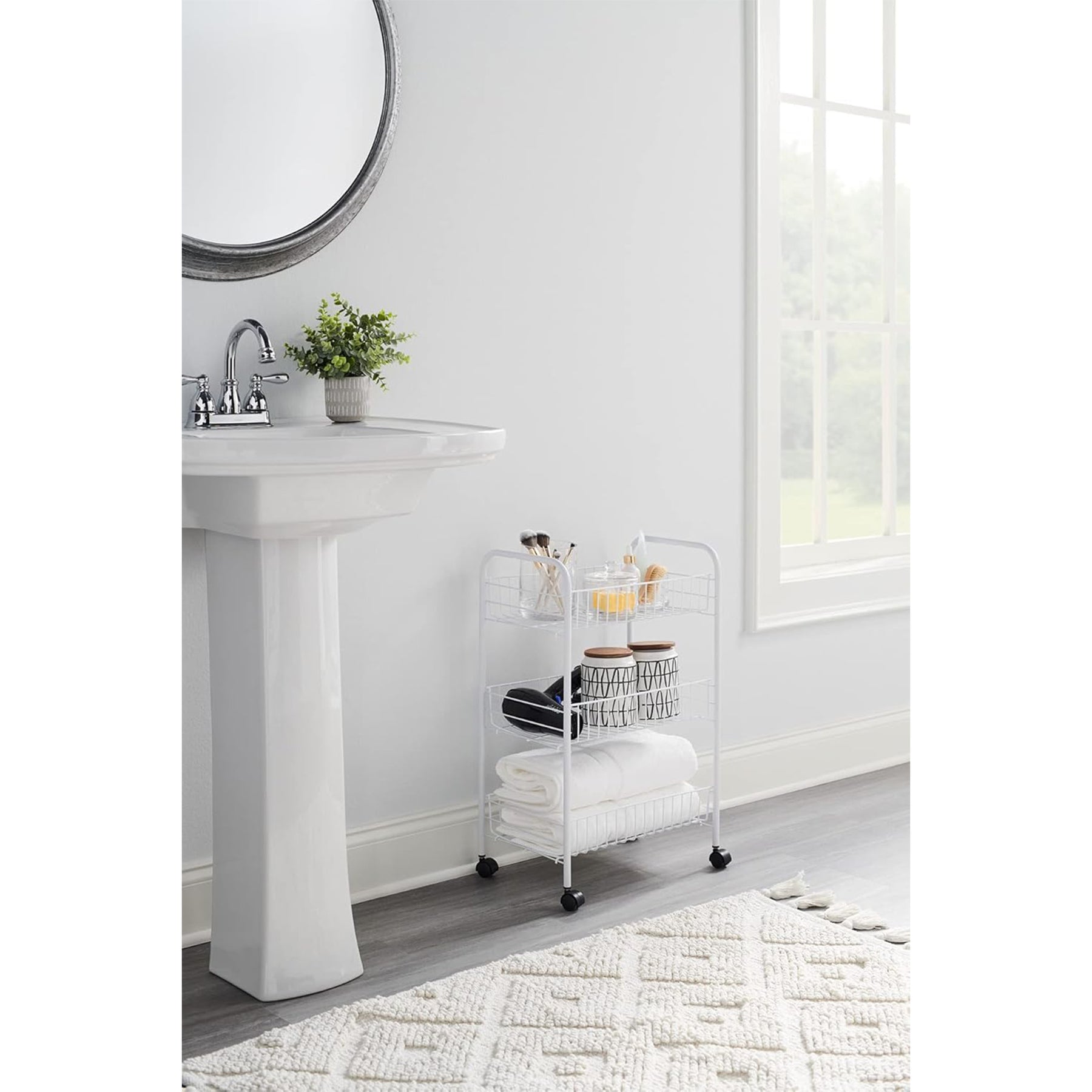 - Cart includes 3 metal baskets and smooth-rolling casters for easy mobility to glide effortlessly across various floor types