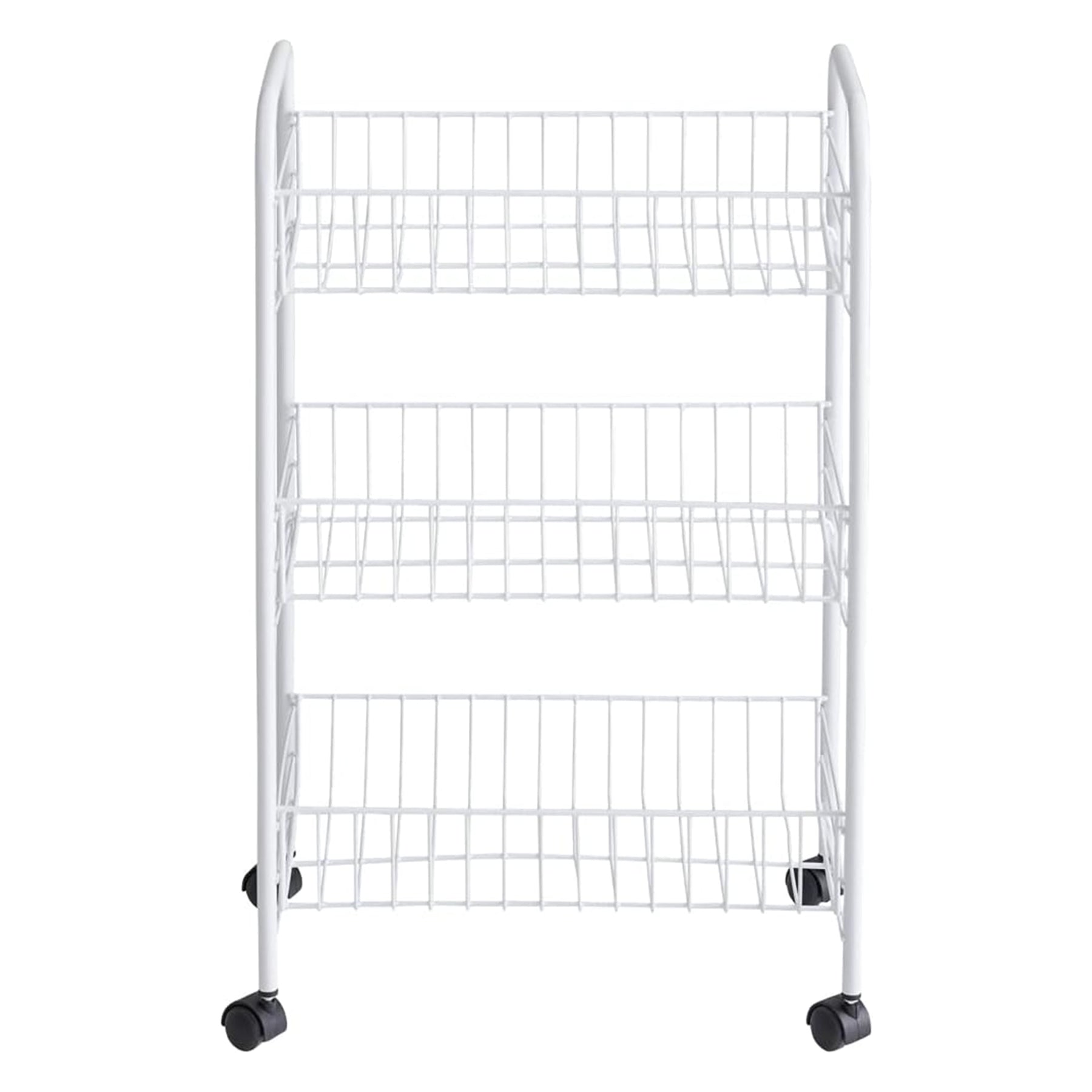 The accessible slim design makes it easy to slide the cart between appliances, alongside counters, or into narrow hallways—perfect for maximizing storage without taking up valuable floor space. Featuring three deep metal baskets, it provides plenty of room for essentials like cleaning supplies, toiletries, pantry items, or office materials, while the open basket-style shelving keeps everything visible and within reach.
