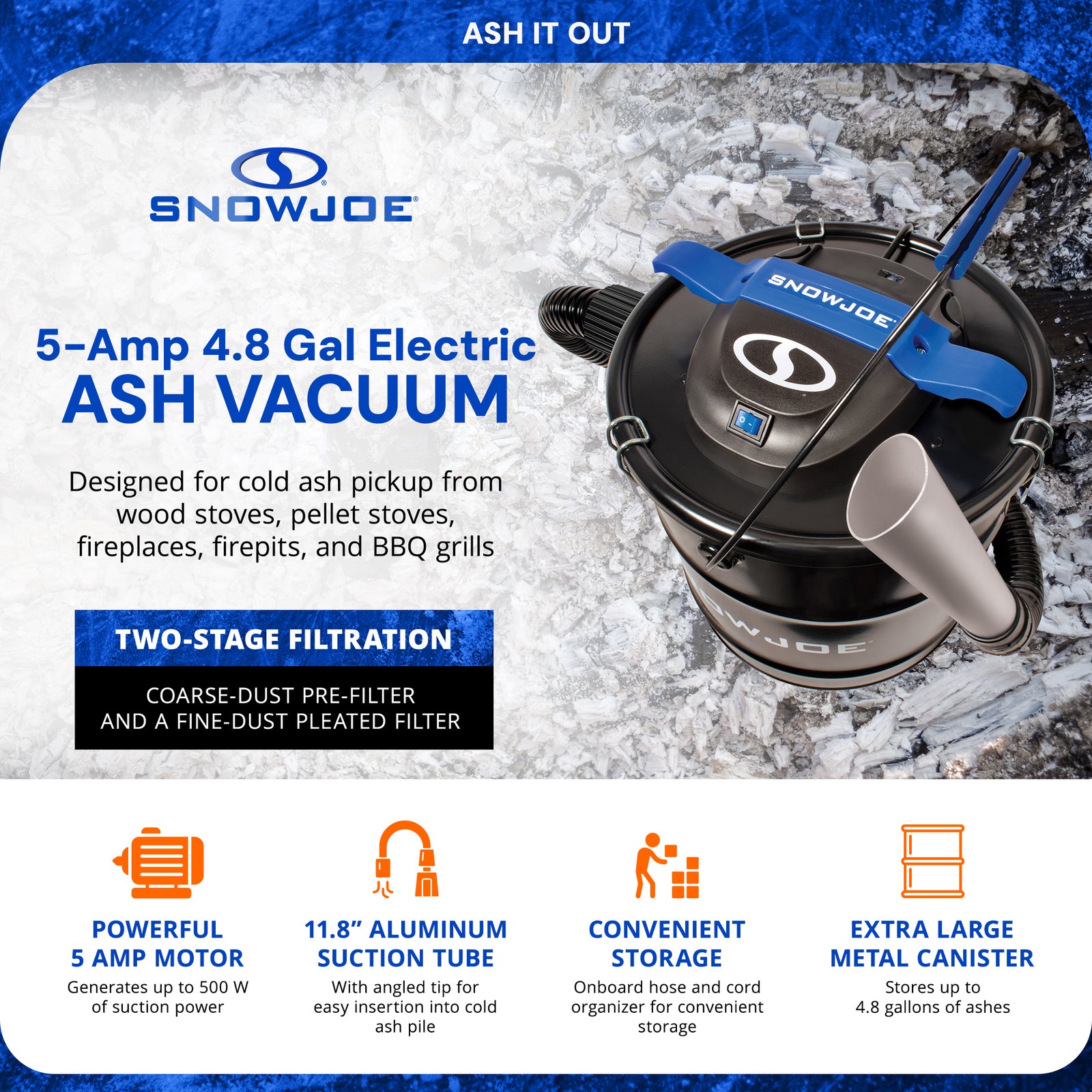 Snow Joe 4.8 Gallon Bagless Ash Vacuum Cleaner, Metal Canister, Blue, ASHJ202E