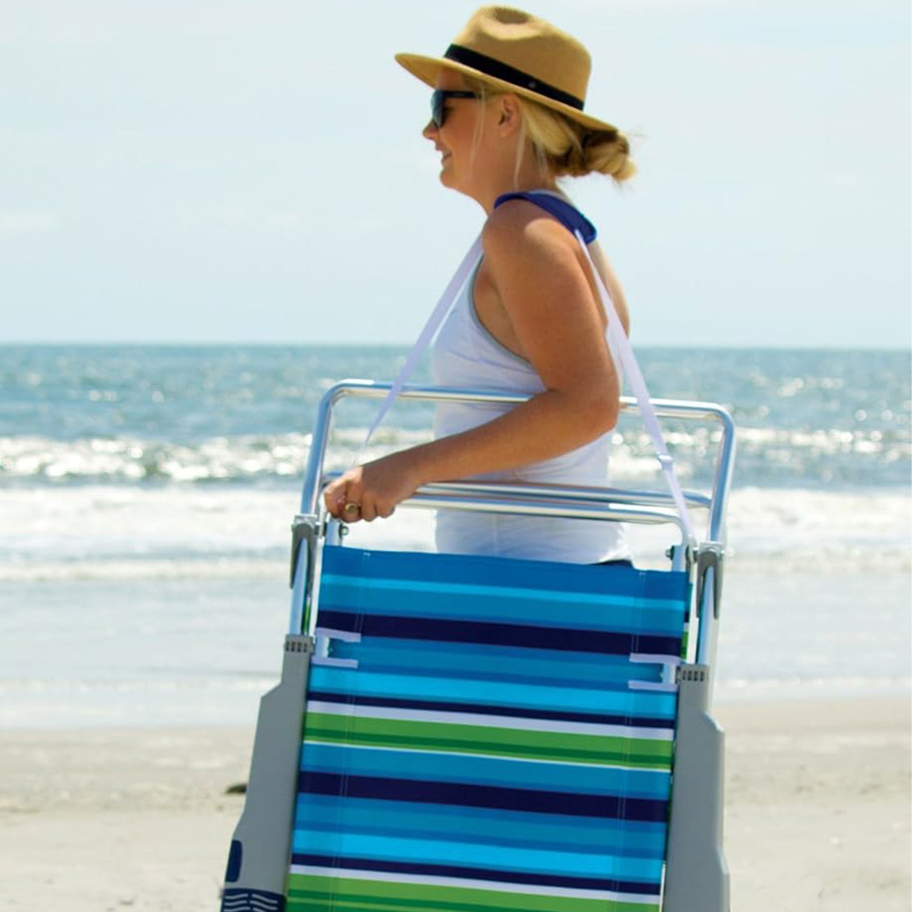 RIO Brands 15 Inch Cushioned Beach Chair w/Aluminum Frame, Blue/Green (4 Pack)