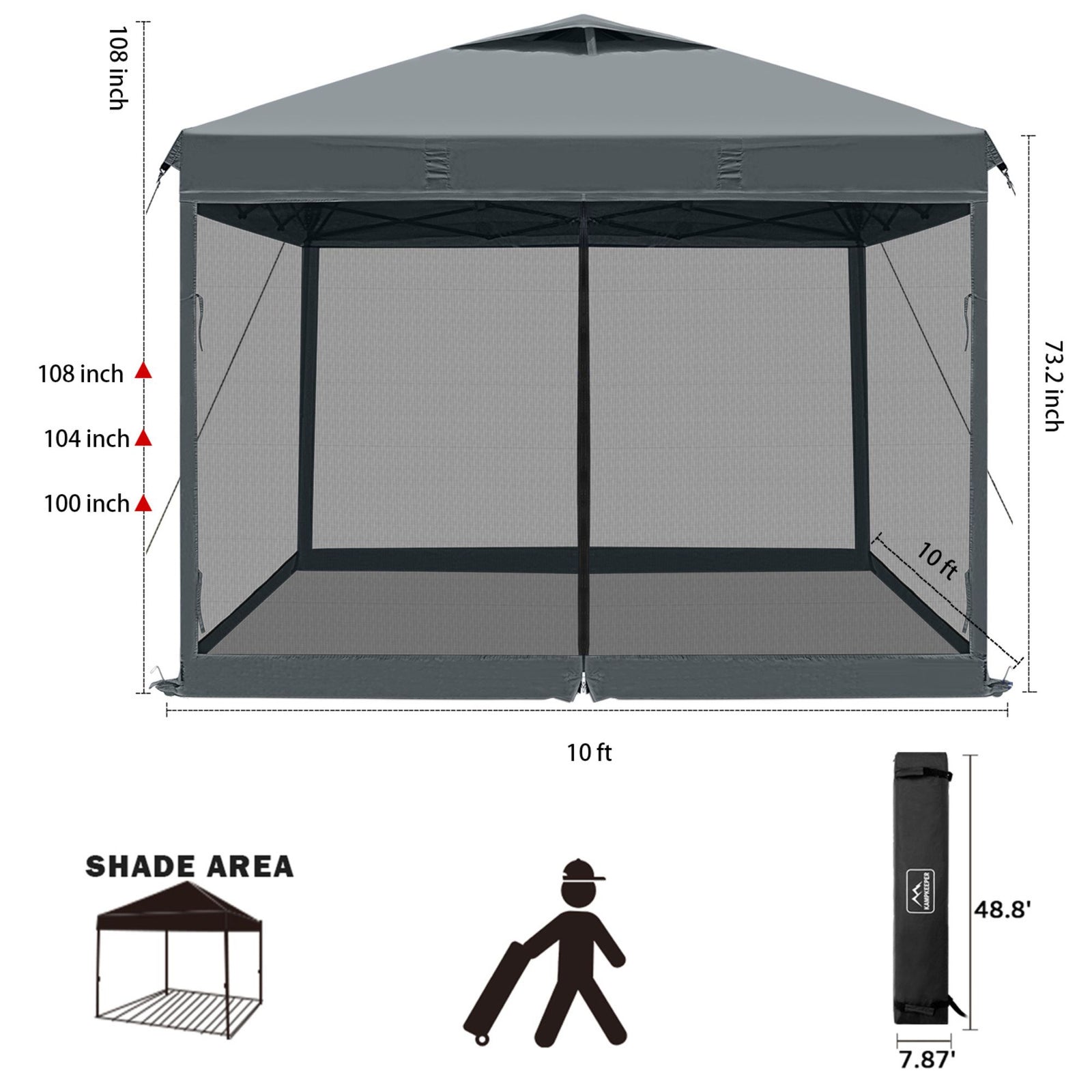 KAMPKEEPER 10x10 Pop Up Canopy Tent with Netting, Outdoor Sun Shade, Dark Grey
