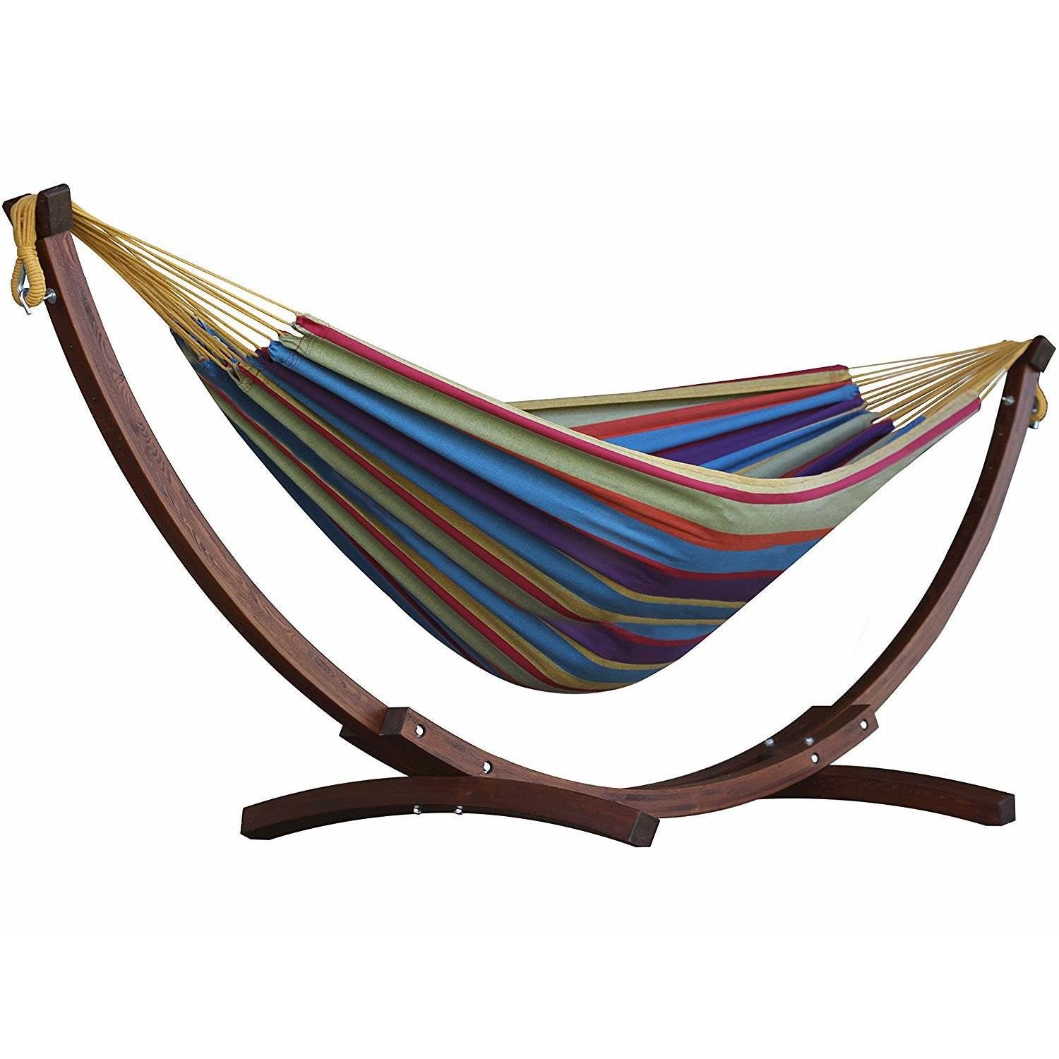 Vivere C8SPCT Double Cotton 2-Person Hammock with Solid Pine Stand, Tropical