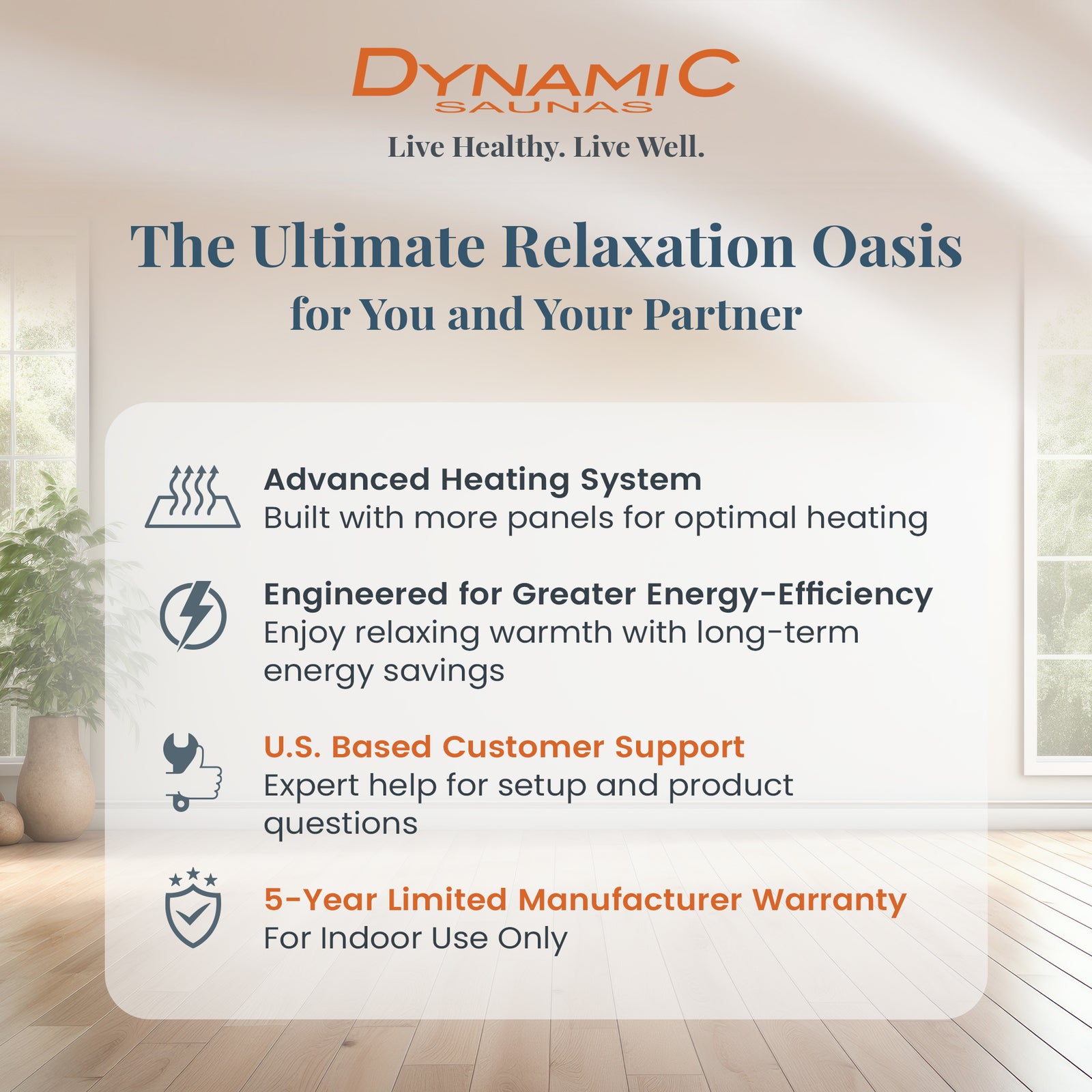 Dynamic Saunas Elite 1 Person Compact Ultra Low EMF FAR Infrared Home Sauna