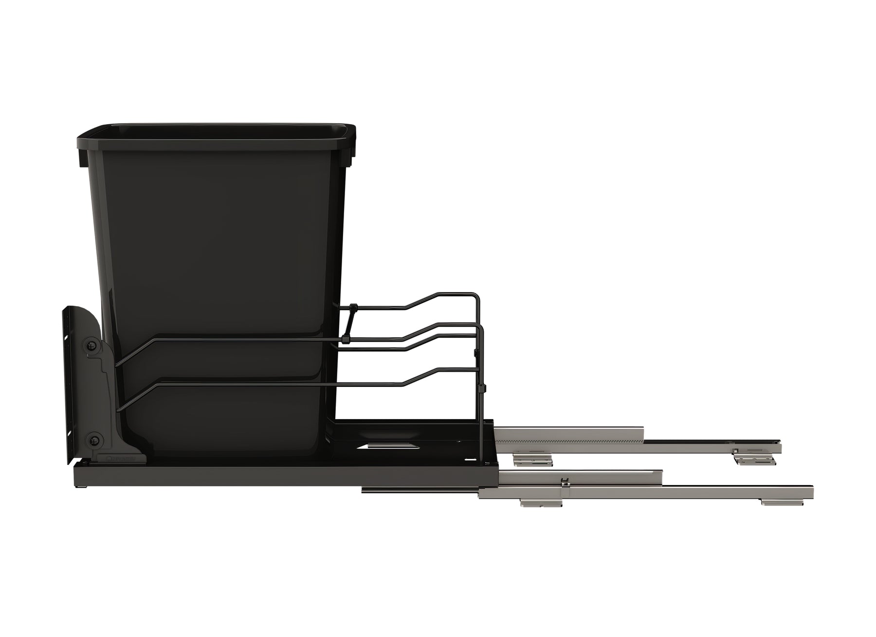 - Includes (1) 35 qt. waste container, (1) metal frame, (1) pair of slides, mounting hardware, and door mount brackets