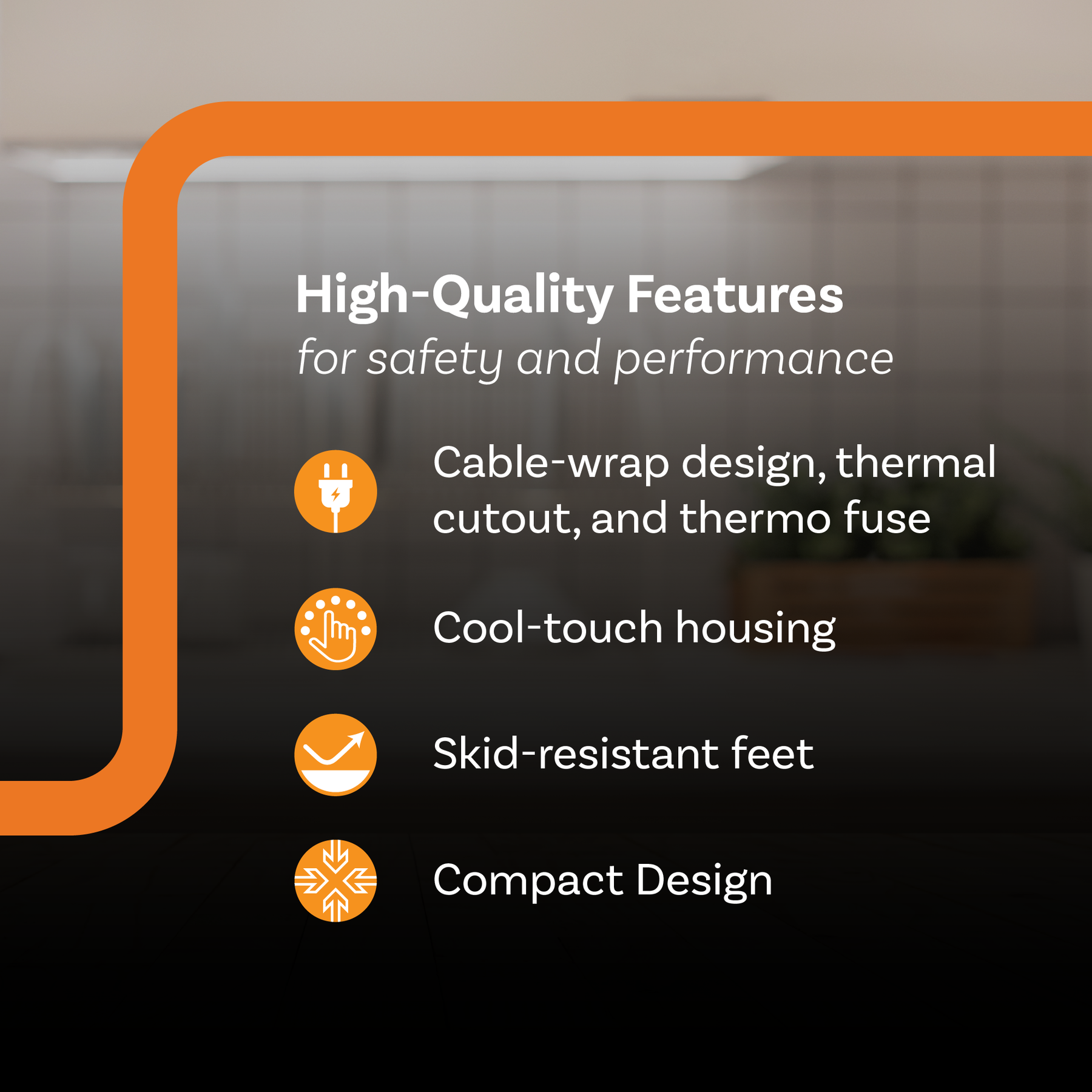 - Offers cool-touch housing and skid-resistant feet