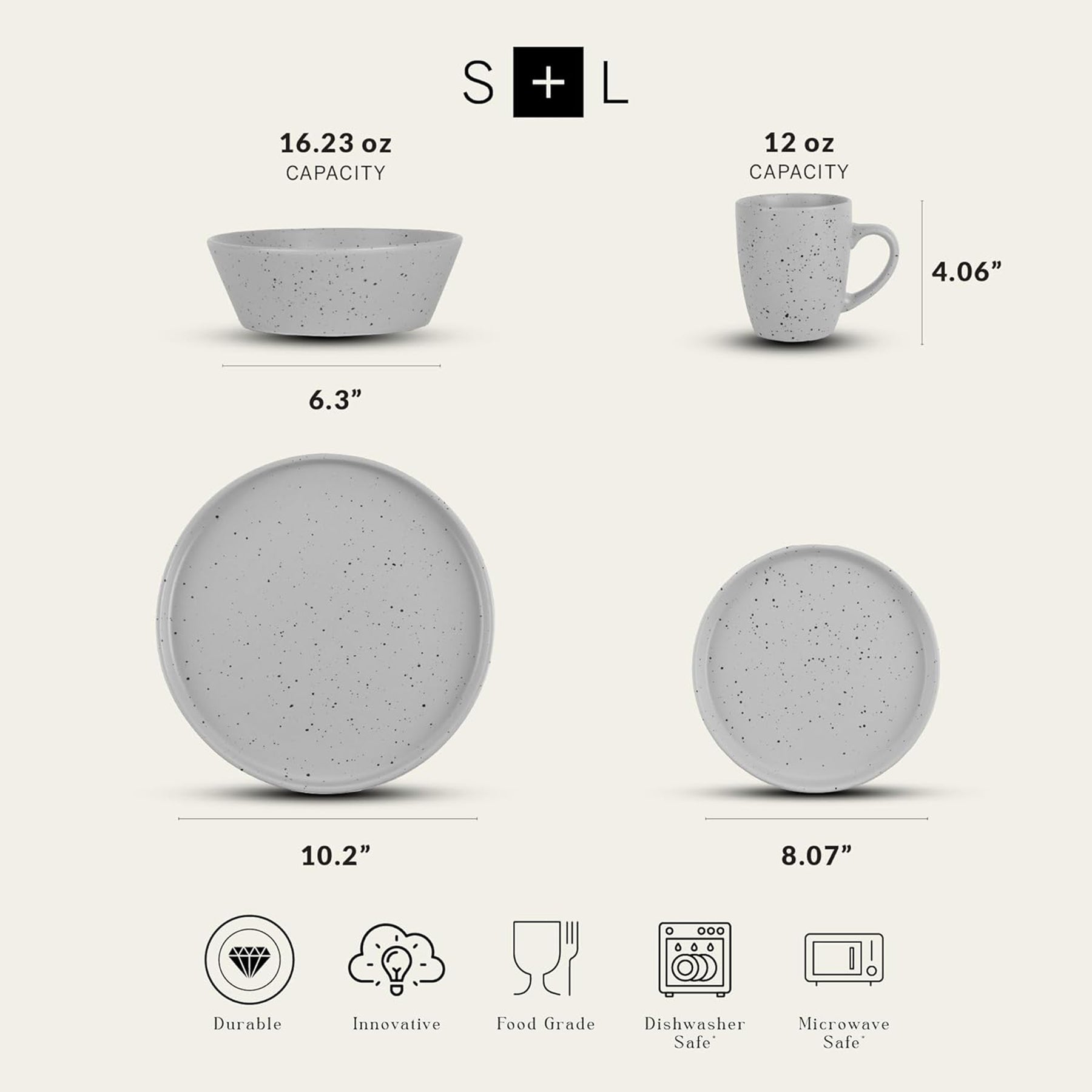 Stone Lain Jade Stoneware 16 Piece Dinnerware Set, Service for 4, Light Grey
