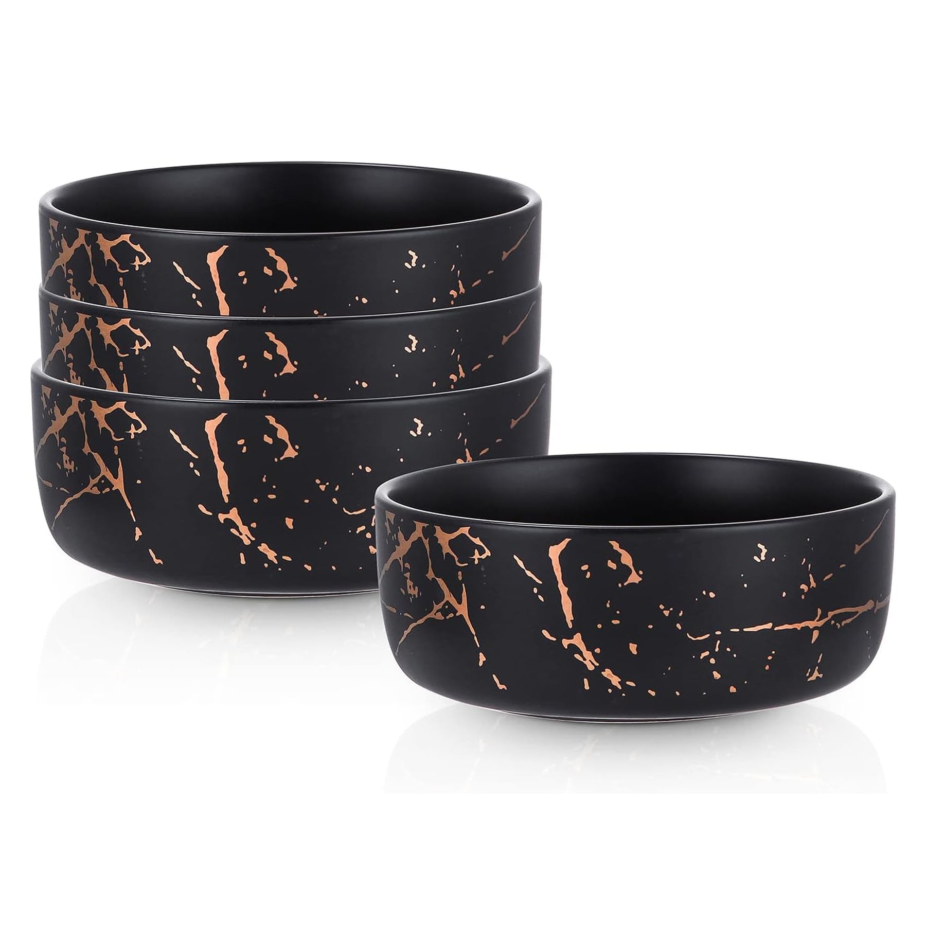 - Zora bowl set features a gold splatter accent on a crisp black surface for a trendy, modern touch