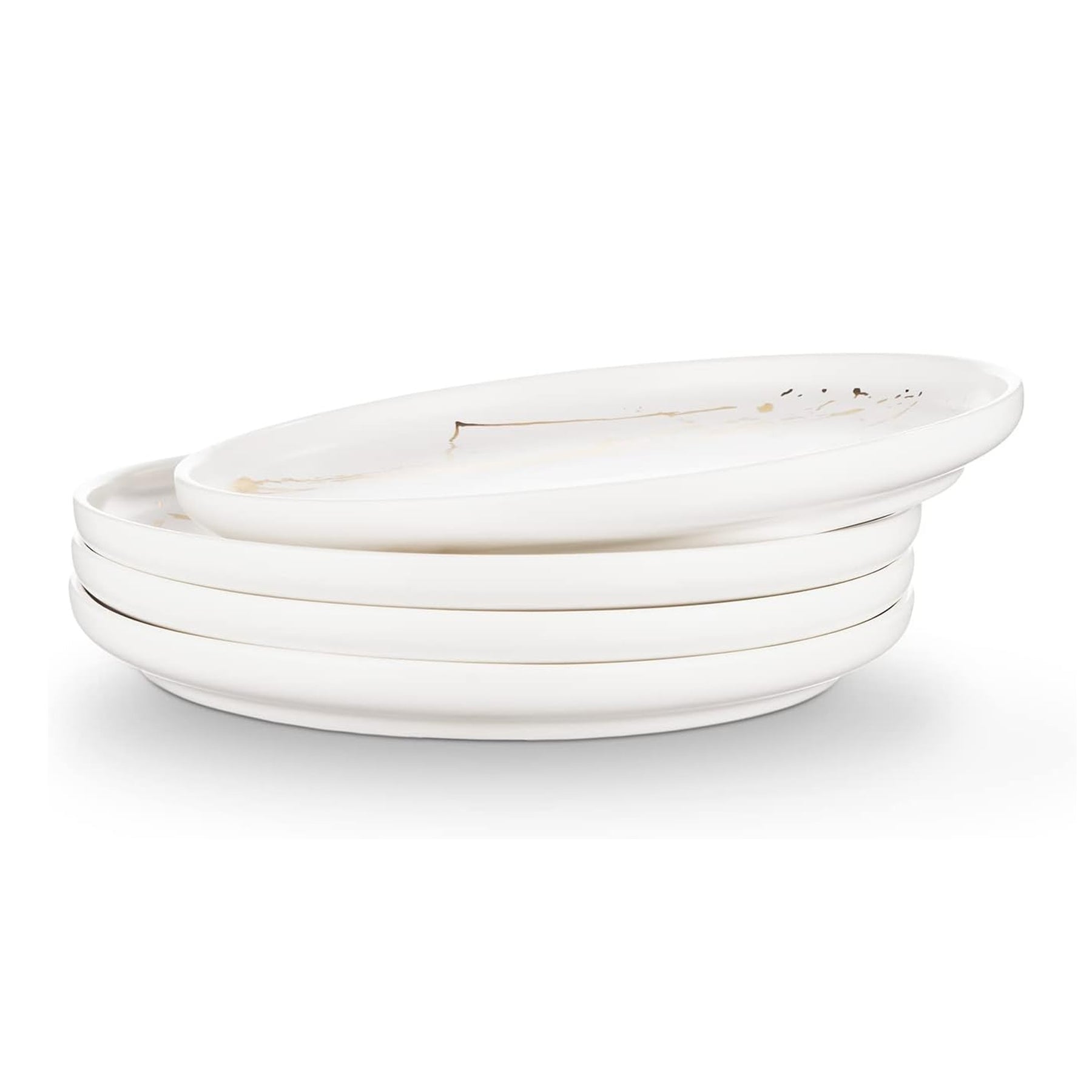 Stone Lain Zora Porcelain 4 Piece Dinner Plate Set, Serving Dishes, White