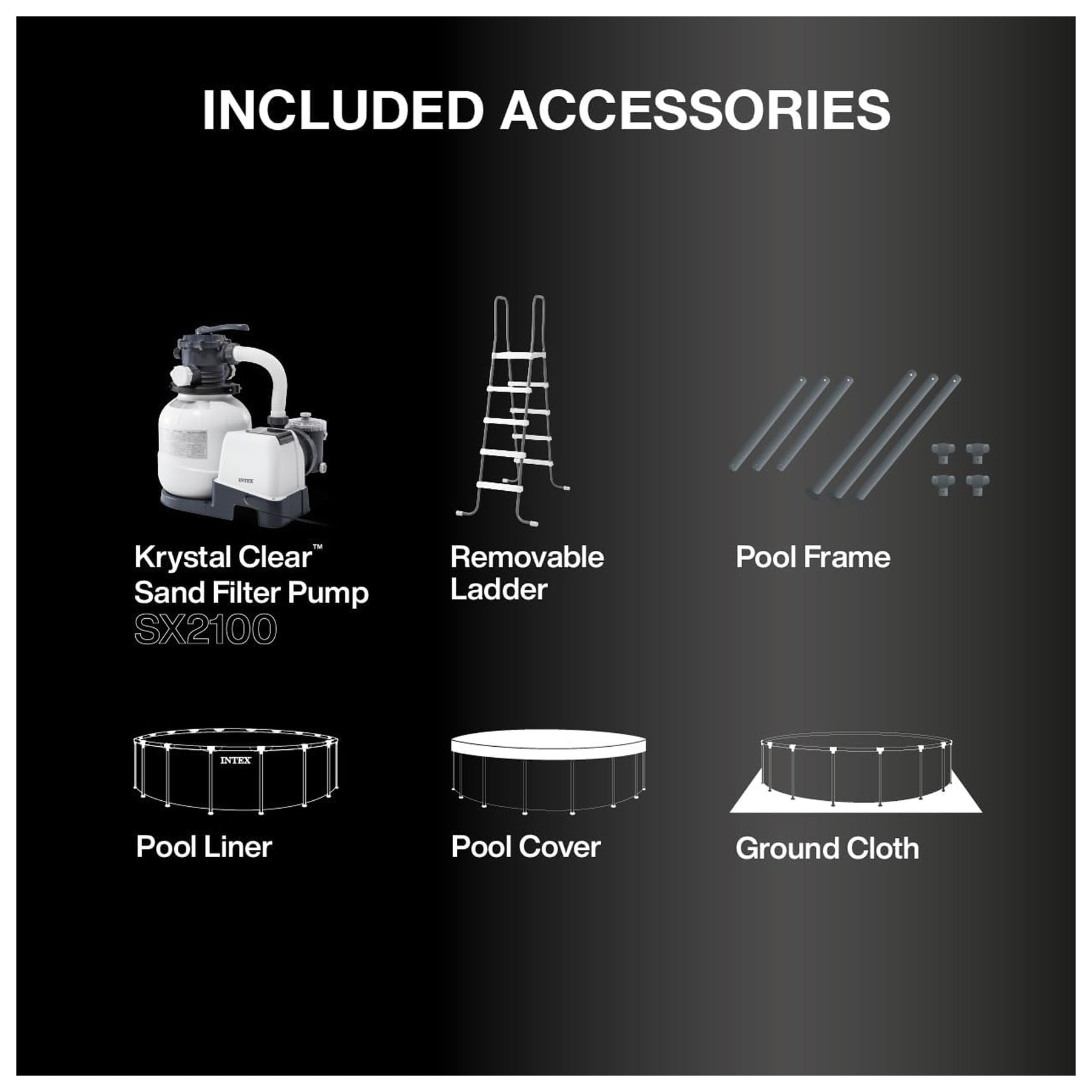 - Includes pool, pool ladder, ground cloth, filter, and pool cover