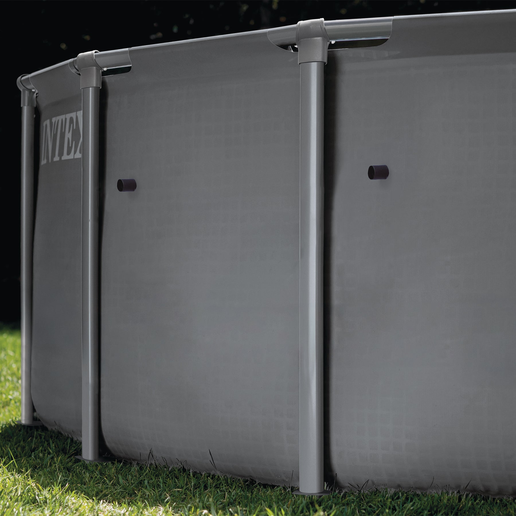 Enhance your backyard this summer with the Intex Ultra XTR Frame pool that features beautiful blue tile print and elegant graphite exterior. Have an amazing time with family and friends with the spacious pool. This top-of-the-line above ground pool combines high-quality with style offering ease of ownership so that your pool time is truly fun time. It comes with a 2-year warranty on pool liner, frame and filter pump.