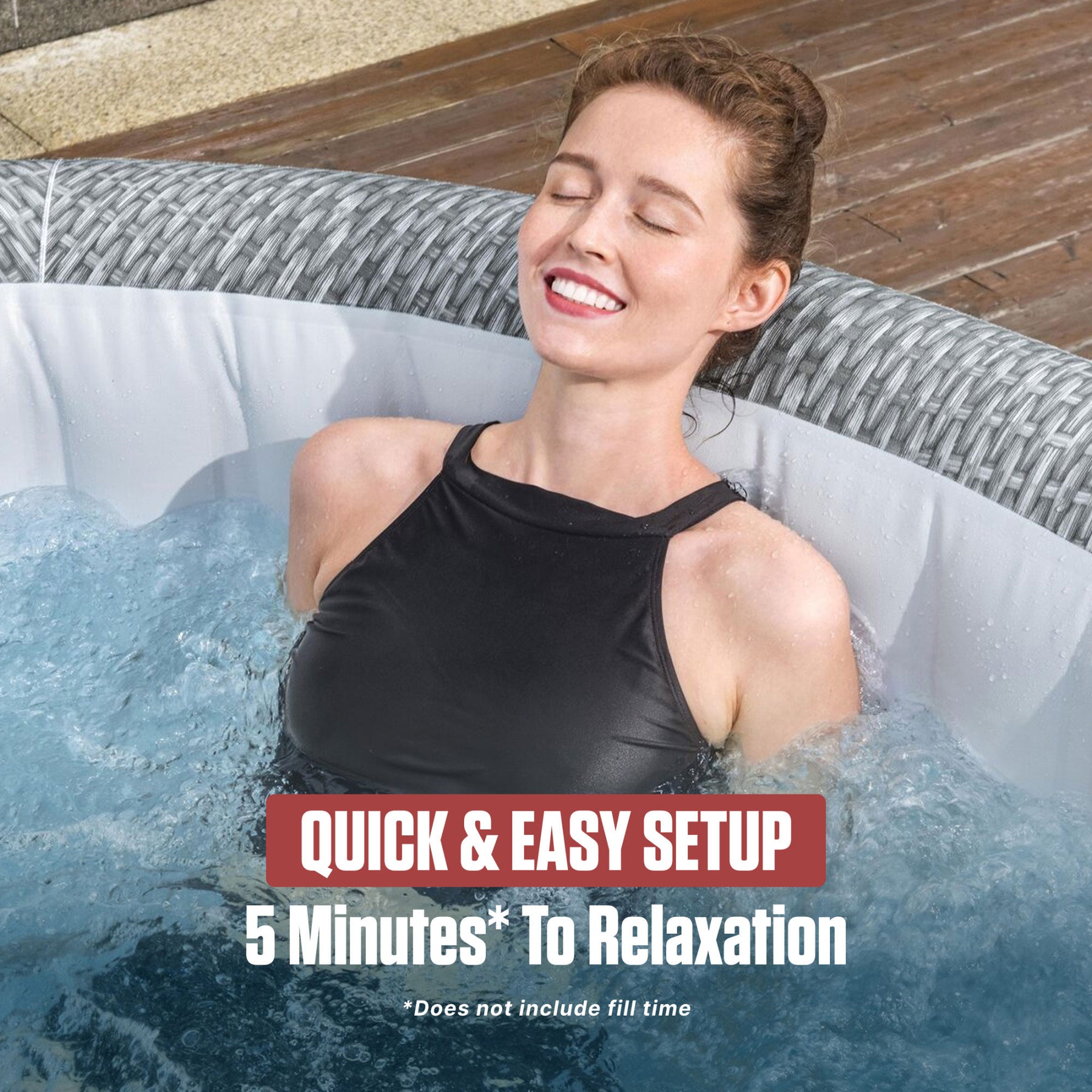 - Equipped with a pump that quickly inflates the spa, heats it up, runs filtration, and controls the massage system