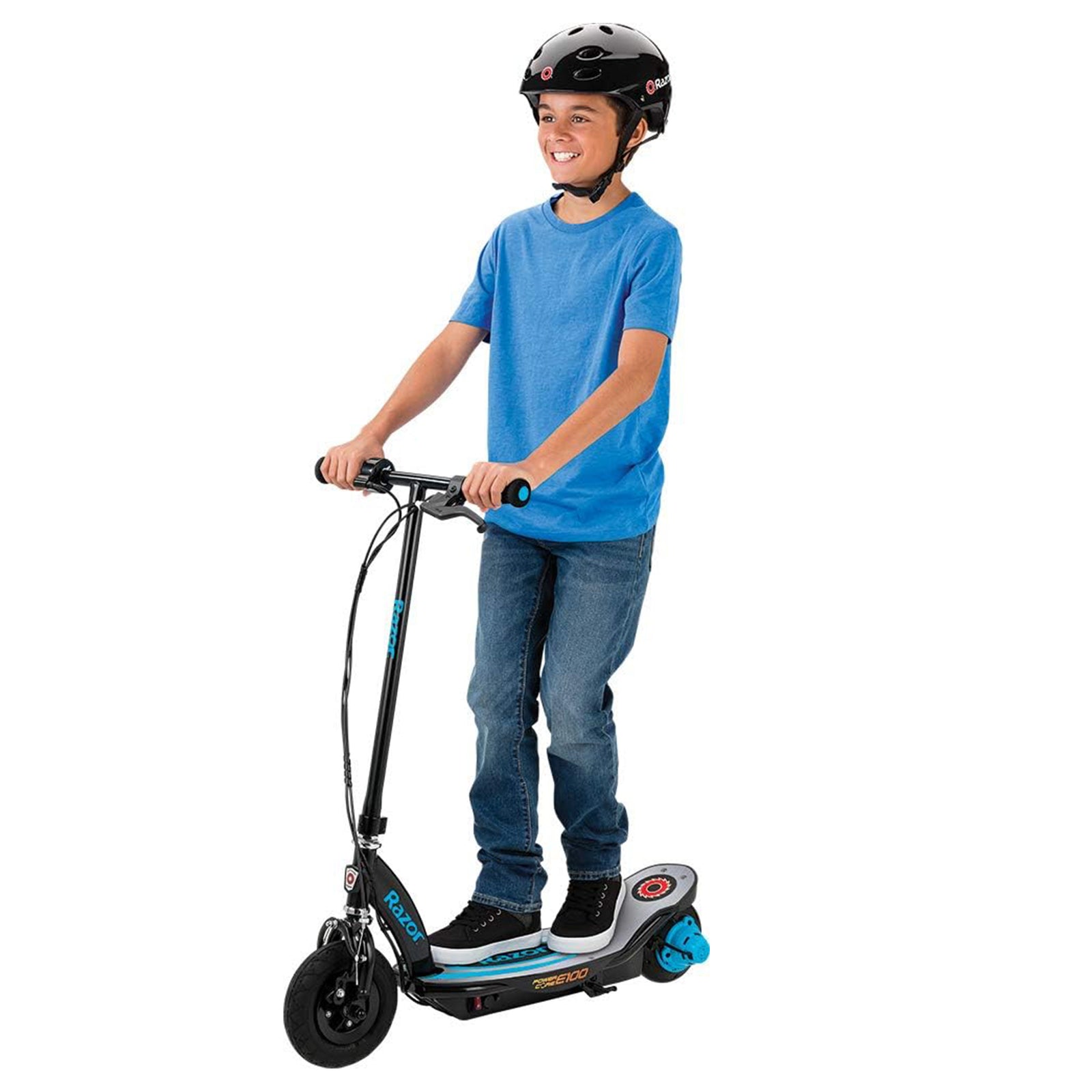 Razor Power Core E100 Electric Kids Scooter with 8" Front Pneumatic Tire, Blue