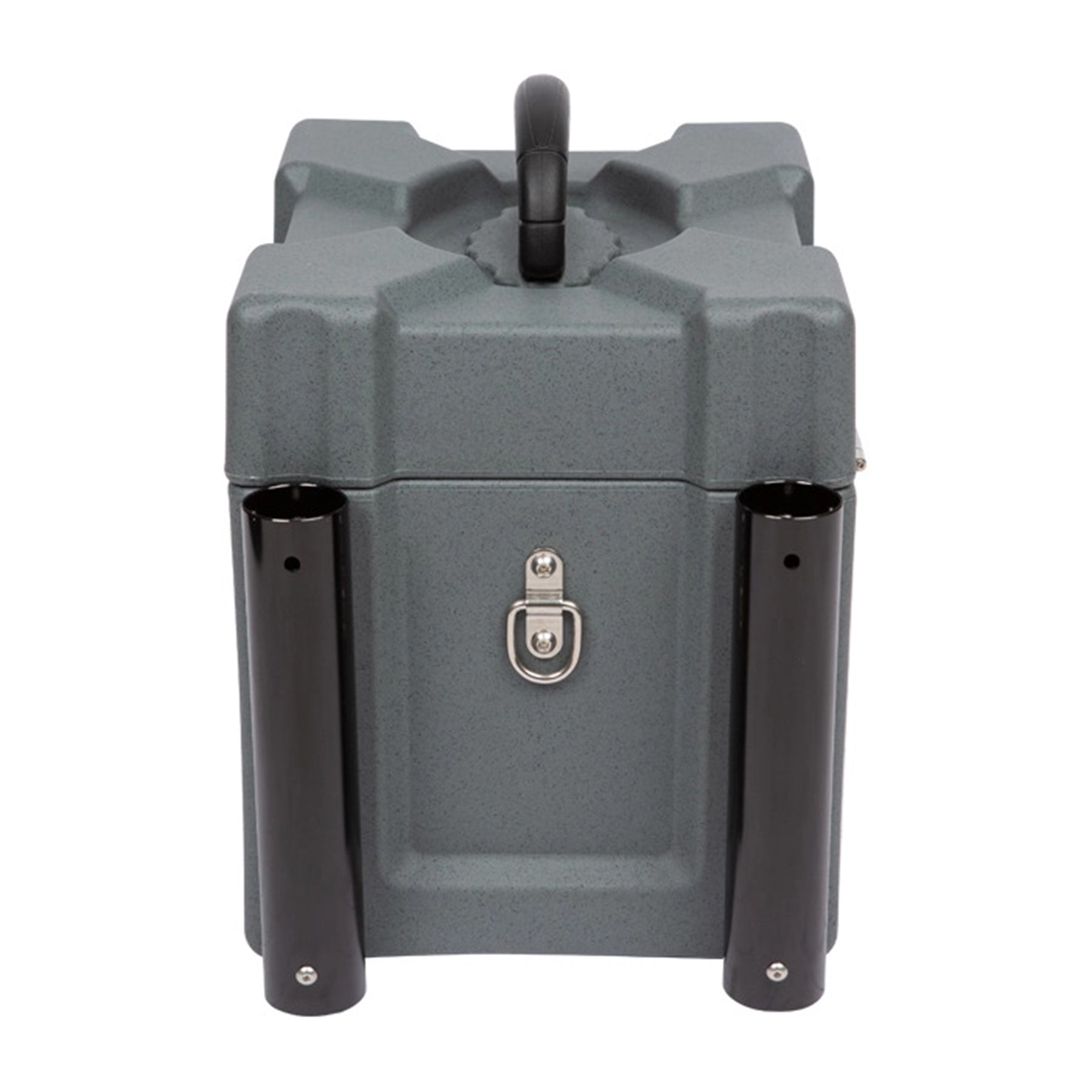 • Features an indestructible rotationally molded body with stainless steel hardware and padlockable latch for maximum strength and security