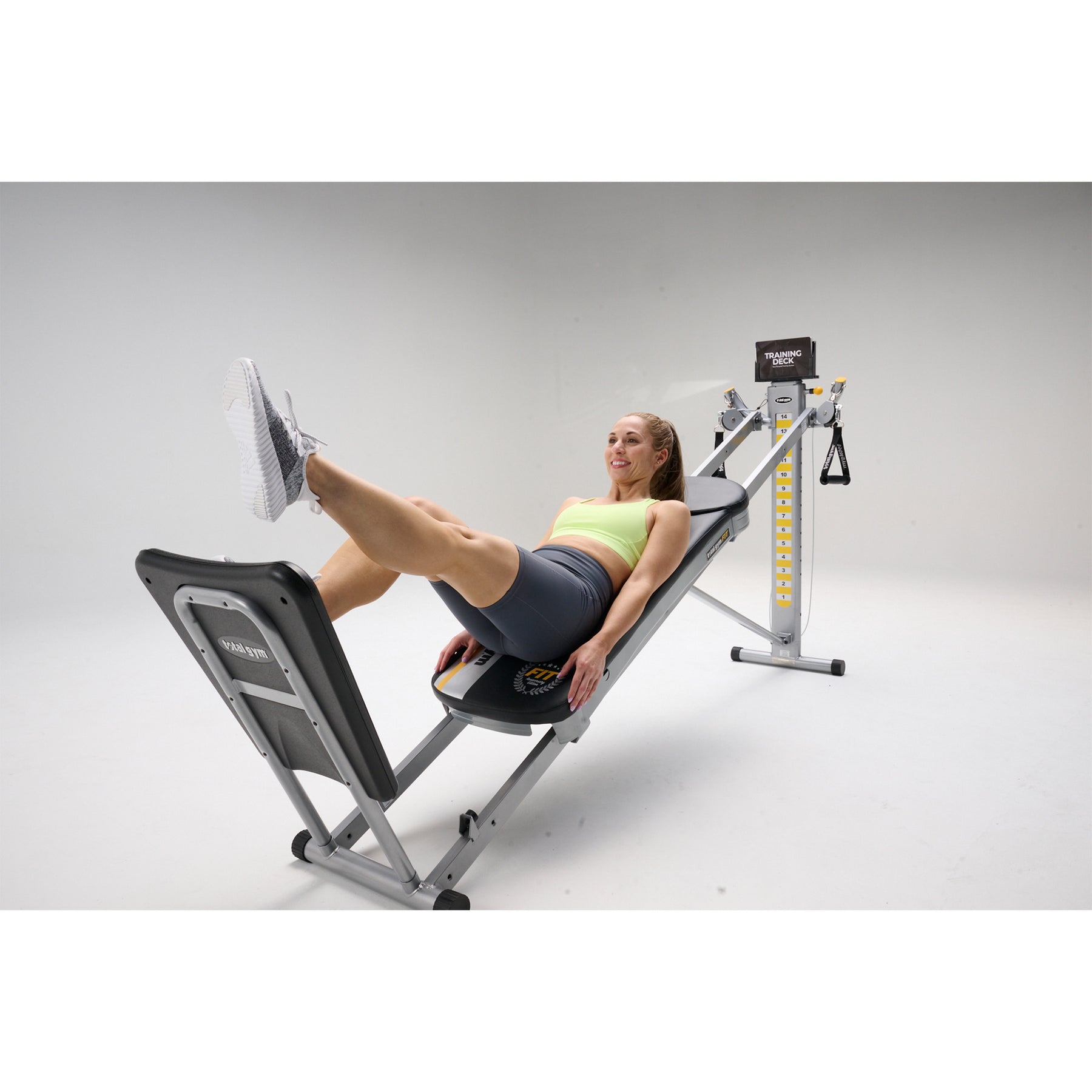 Perfect for Plyo Jumps, Pilates footwork, traditional squats, and dynamic lower-body routines, the stand seamlessly integrates into your Total Gym setup. It attaches easily to the machine’s receptacles, ensuring a secure connection for both explosive movements and slow-controlled reps. Crafted with durability in mind, the stand delivers a dependable platform that supports consistent, long-term training.