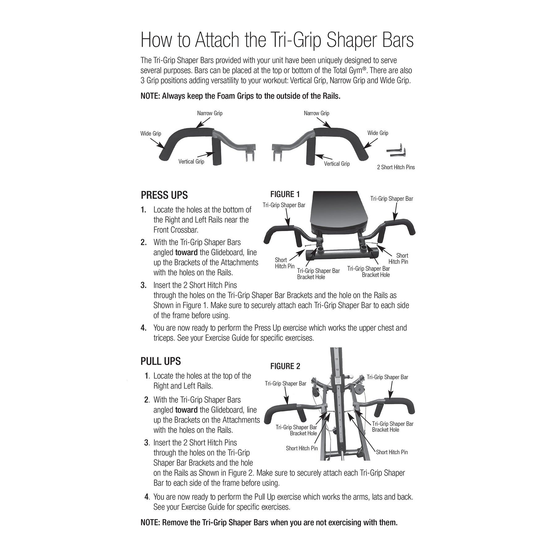 Total Gym Tri-Grip Shaper Bars with Vertical, Narrow, and Wide Grip Positions