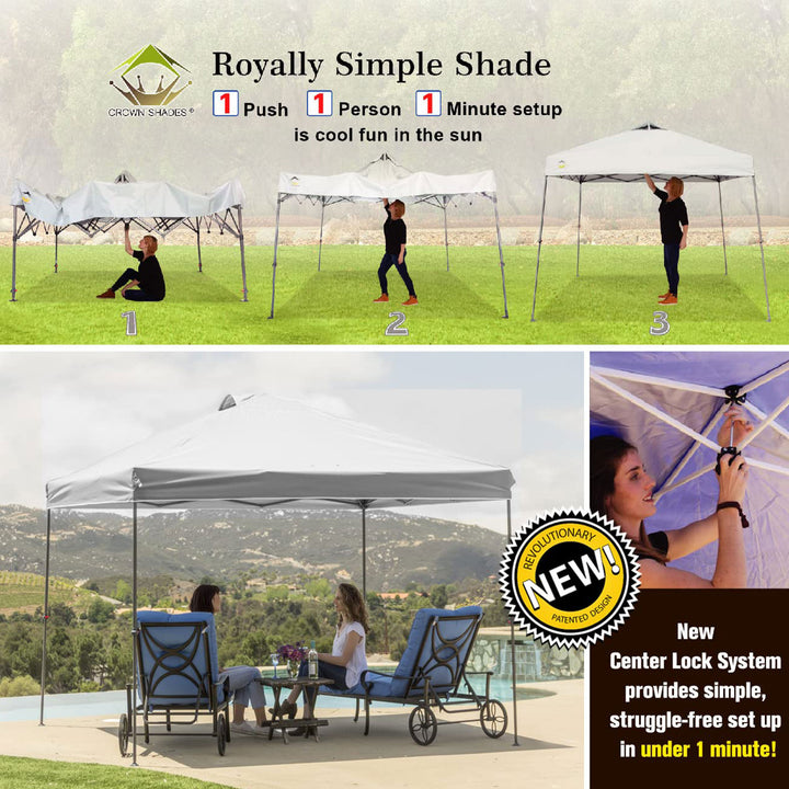 Crown Shades 10x10 Ft Instant Pop Up Shade Canopy w/Carry Bag, White (Used)