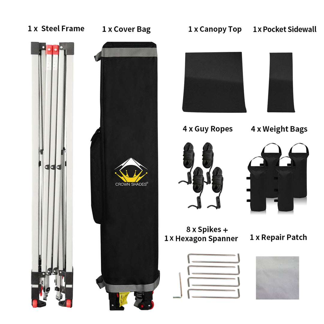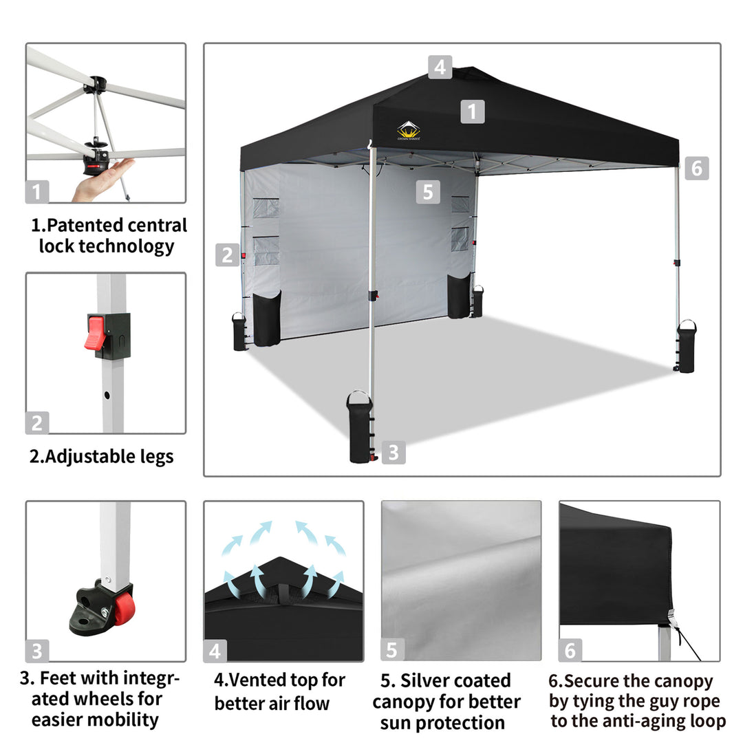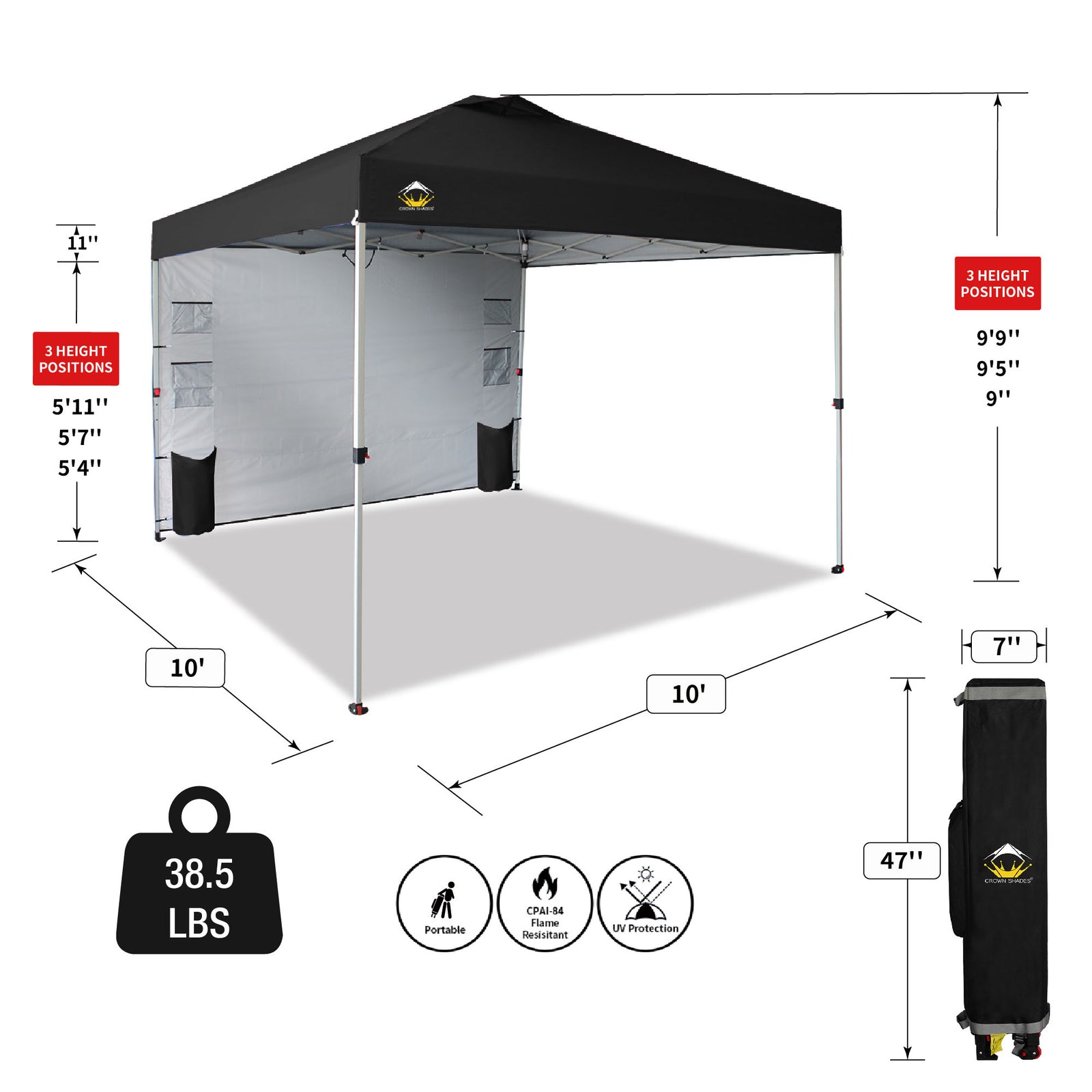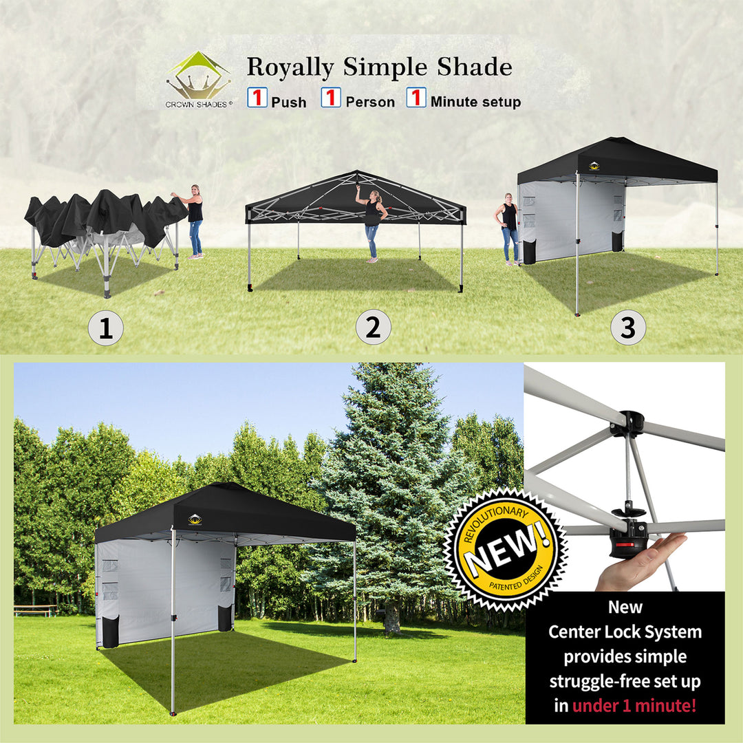 CROWN SHADES 10x10 Ft Pop Up Canopy Tent w/Organizer Pocket Sidewall,Black(Used)