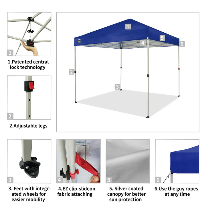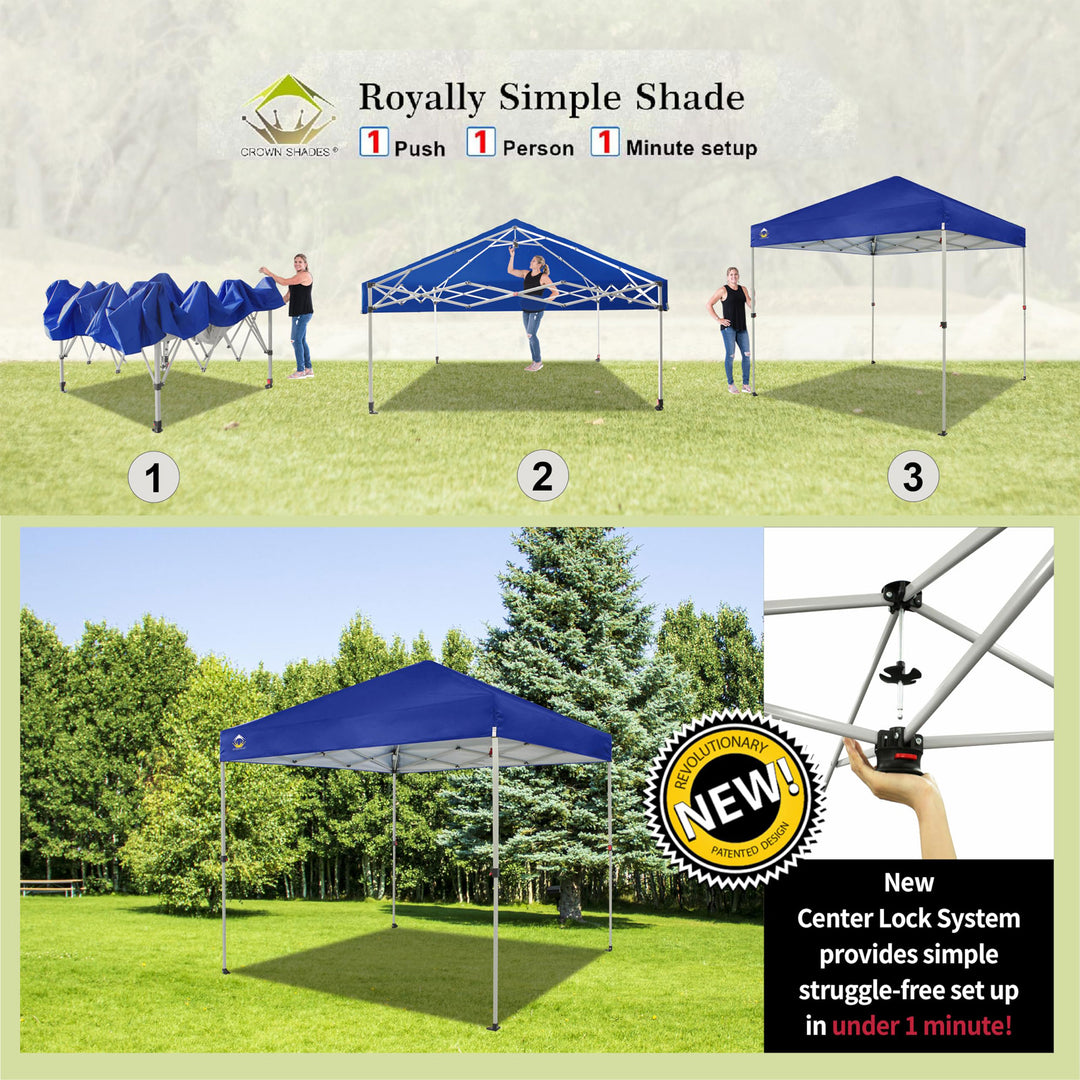 - Patented 1-push center lock technology, allowing 2 people to set up the canopy in seconds without any tools