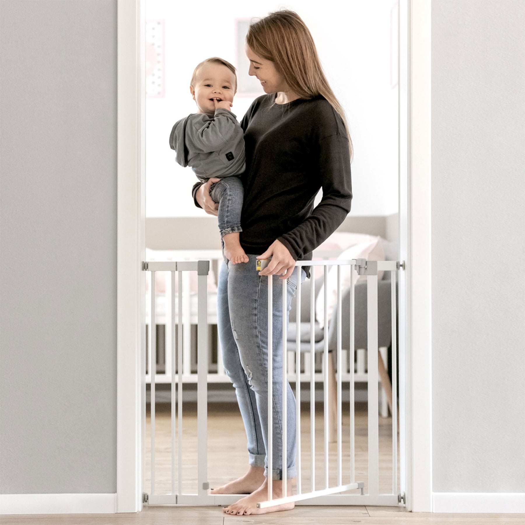 Hauck Pressure Mounted Baby Safety Gate with 8" Extension, White (Open Box)