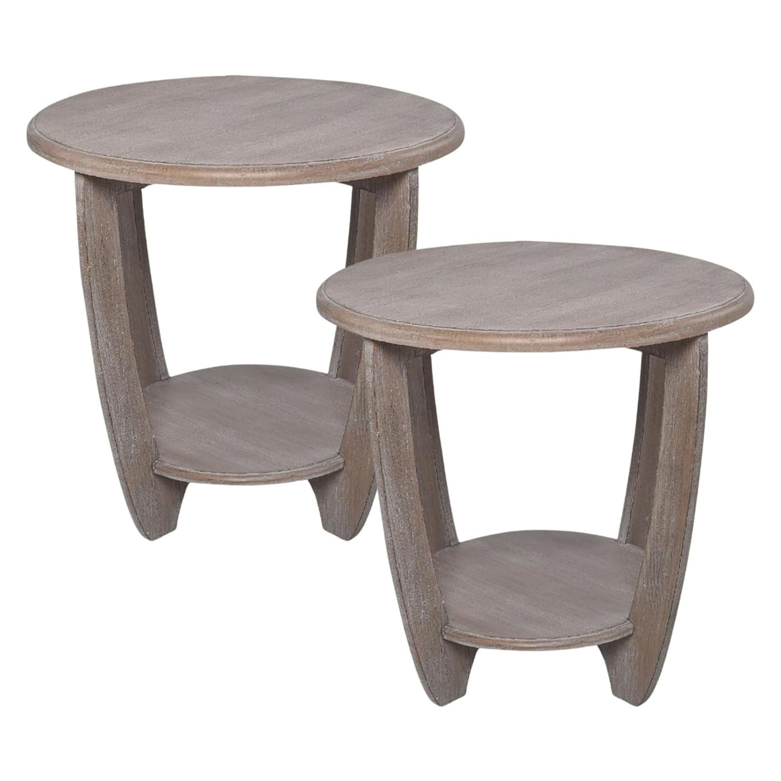 COZAYH Rustic Table Round Accent Wood Tray Top Curved Base Furniture, Set of 2