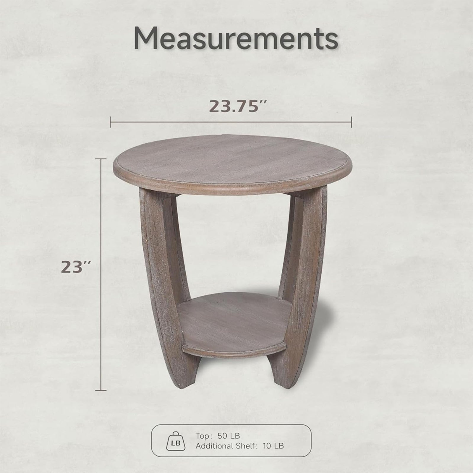 COZAYH Rustic Farmhouse Round End Table for Living Room, Vintage Grey, Set of 2