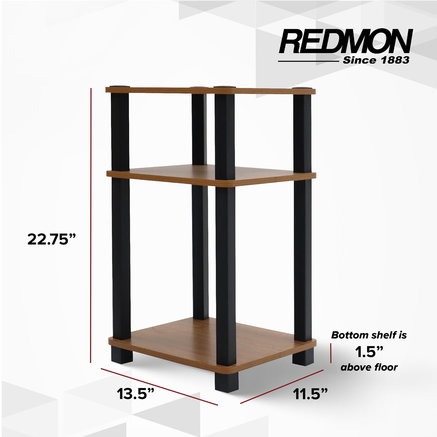 Compact and space-saving, the unit measures 13.5"L x 11.5"W x 22.75"H with interior shelf space of 11 5/8"L x 19 3/4"W x 13 3/8"H, fitting neatly beside a bed, sofa, or entryway. Backed by Redmon’s heritage of quality since 1883, this lightweight 3-tier storage shelf offers a practical yet elegant solution for home organization. It is easy to assemble, easy to clean, and designed to last.