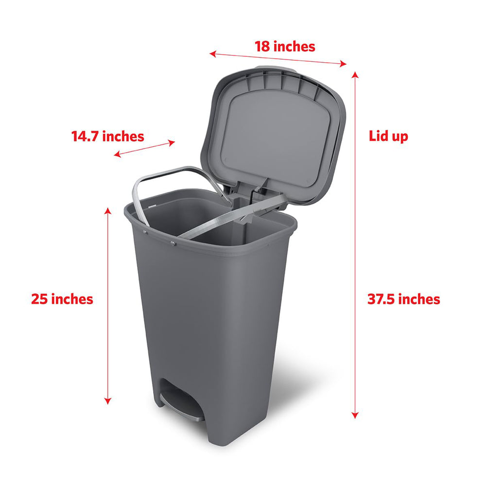 Glad Kitchen Trash Can with Lid, Foot Pedal and Garbage Bag Rings, 20 Gal, Grey