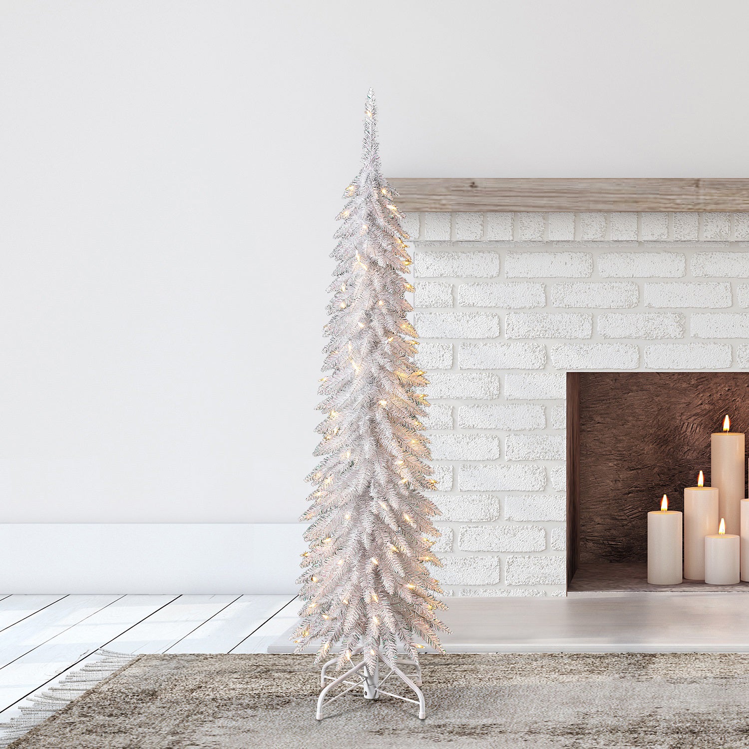 Evergreen Classics 5' White Pencil Pine Christmas Tree, 100 White LEDs(Open Box)