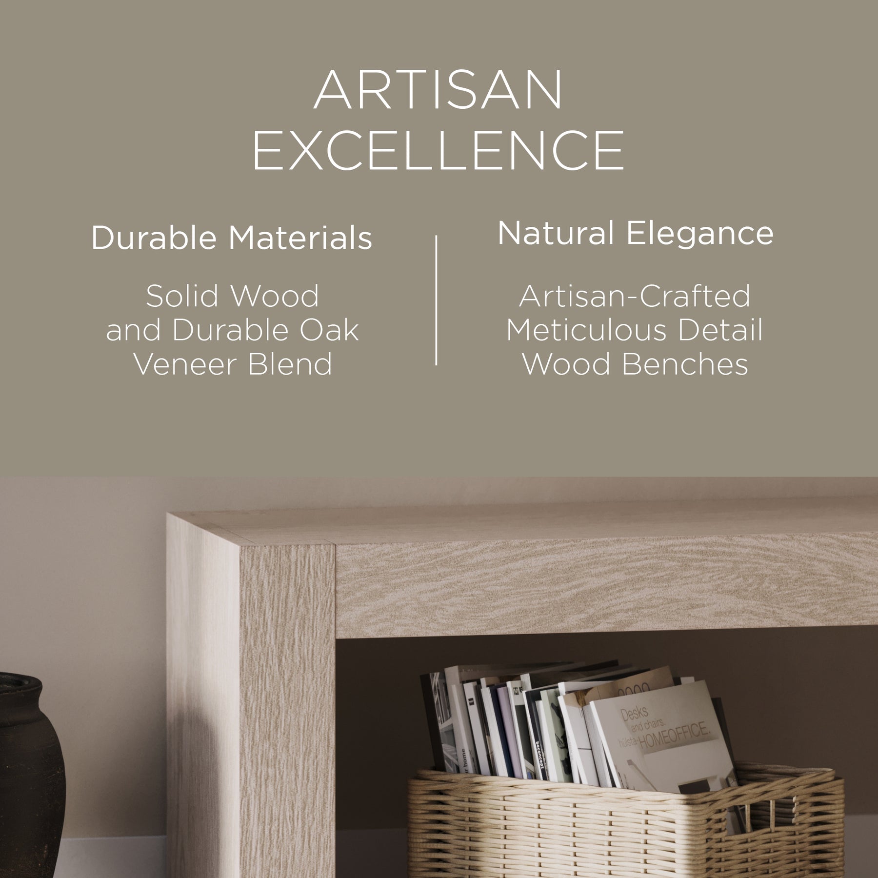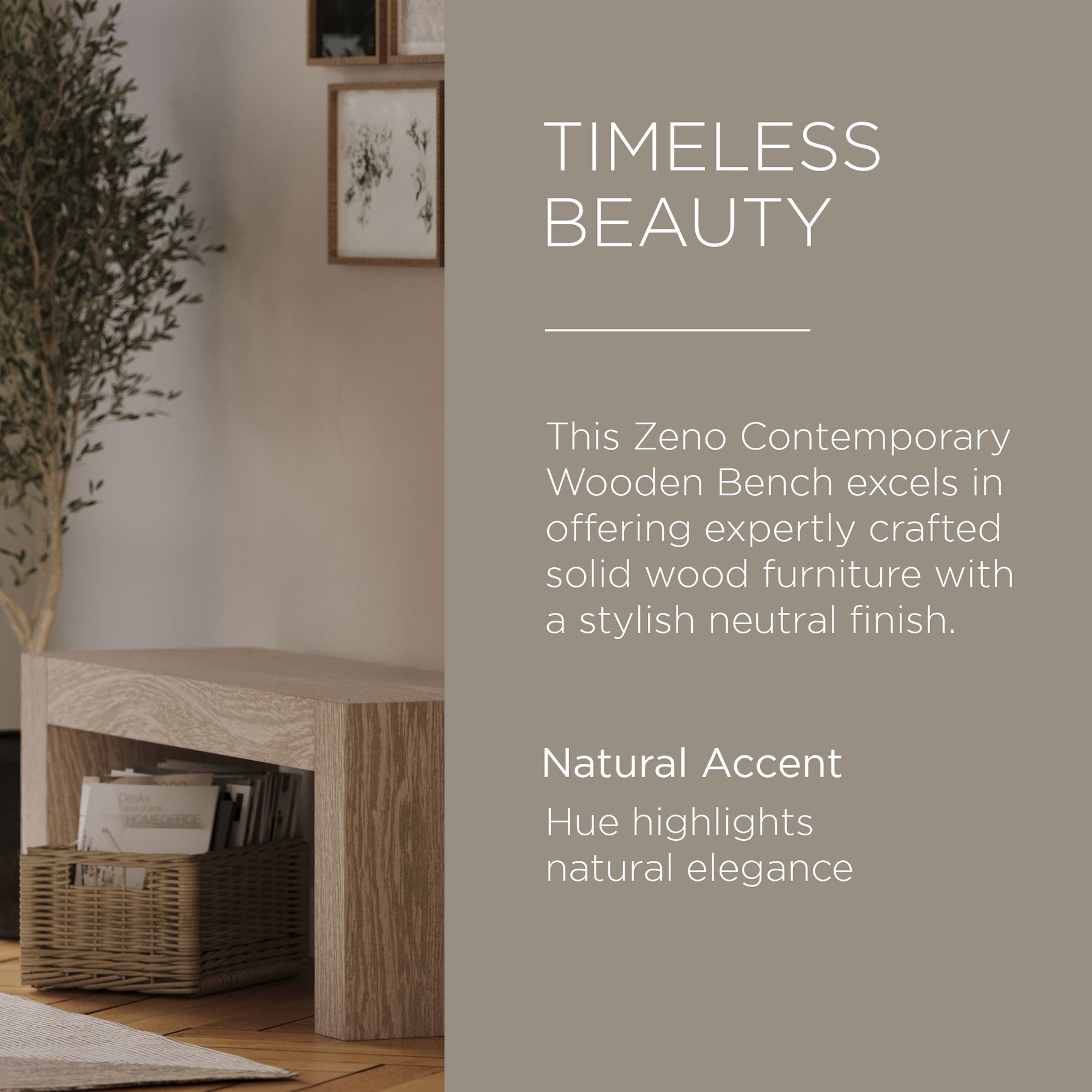- Solid wood furniture with a neutral finish is a specialty, and this Zeno Wood Bench delivers this hue impeccably well