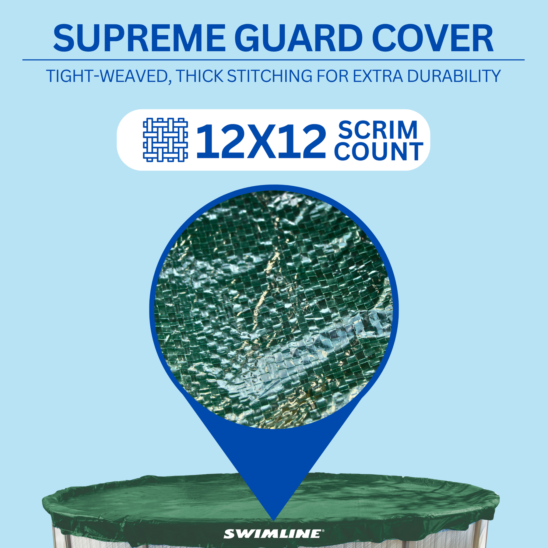 • Supreme line features a solid 12 x 12 scrim thread count material, ensuring no water or debris passes through during the winter season, while being UV resistant