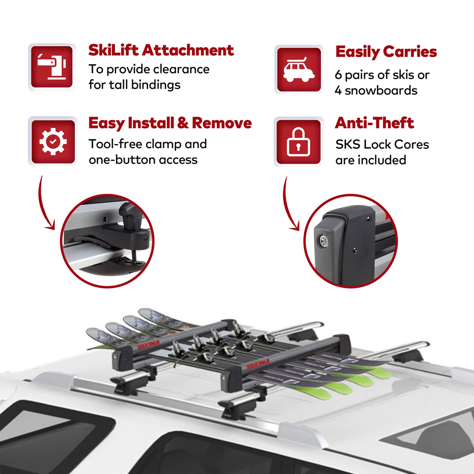 Yakima FreshTrack 6 Universal Car Roof Ski and Snowboard Rack, Black (Open Box)