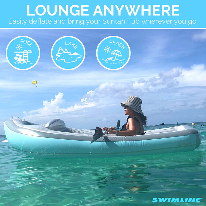 Lounge and relax in the swimming pool all day with the Swimline Classic Inflatable Cruiser Boat Pool Float. Made for ages 16 and up, this adult pool float includes 2 cup holders and a built-in ice chest to keep your beverages nice and cool.