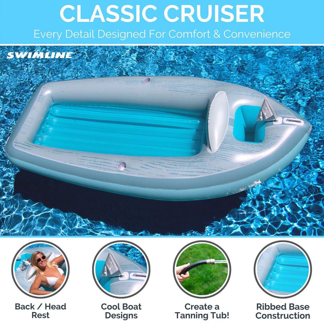 Whether you are spending the day in your backyard pool or floating down a lazy river, the Swimline Classic Inflatable Cruiser Boat Float will help you stay relaxed and refreshed.
