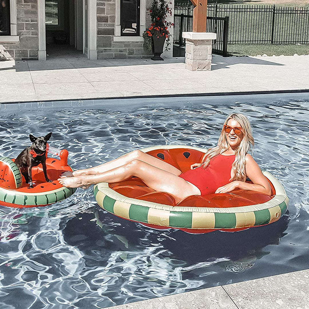 For 1 in a melon, make a splash this summer with the Inflatable Watermelon Slice Floating Water Raft from Swimline.