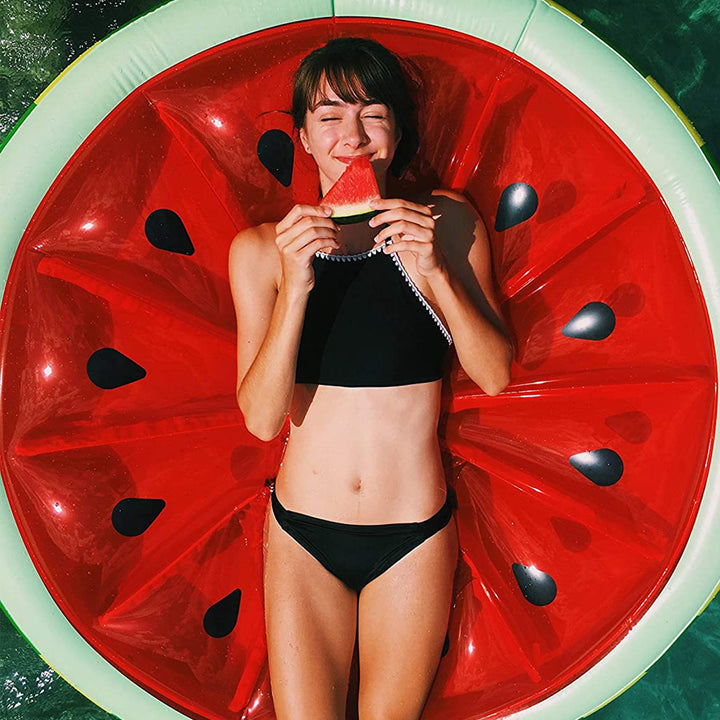You know it's summertime when you're able to enjoy a delicious, juicy slice of watermelon. Now you can eat some while floating on the Swimline Inflatable Watermelon Slice Island Float.