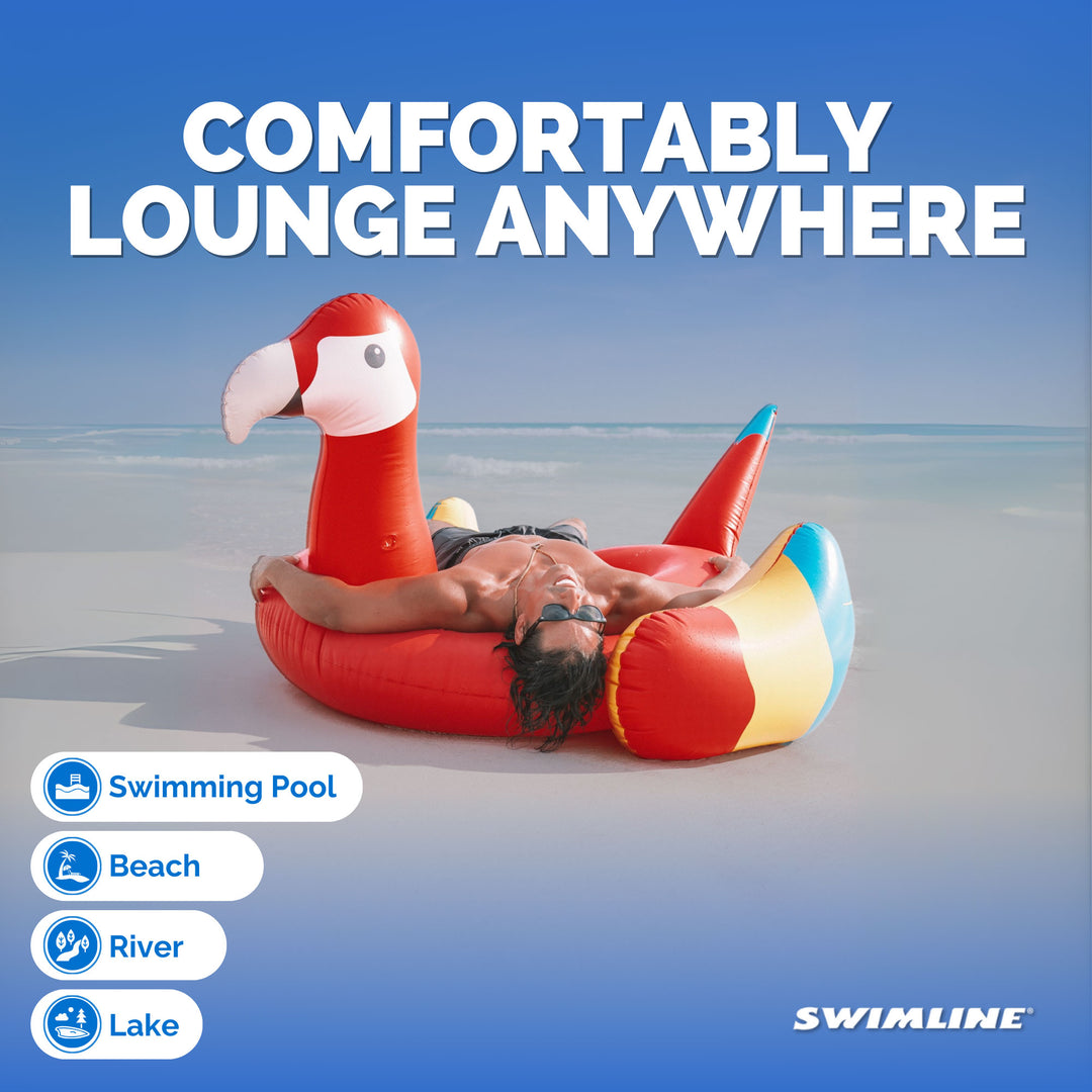 Swimline 90629 Giant 93" Tropical Parrot Inflatable Ride On Swimming Pool Float