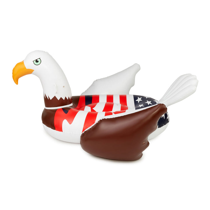 Show off your American pride this summer with the Patriot Eagle Float, an inflatable pool raft shaped like a bald eagle with an American flag waving across its back.