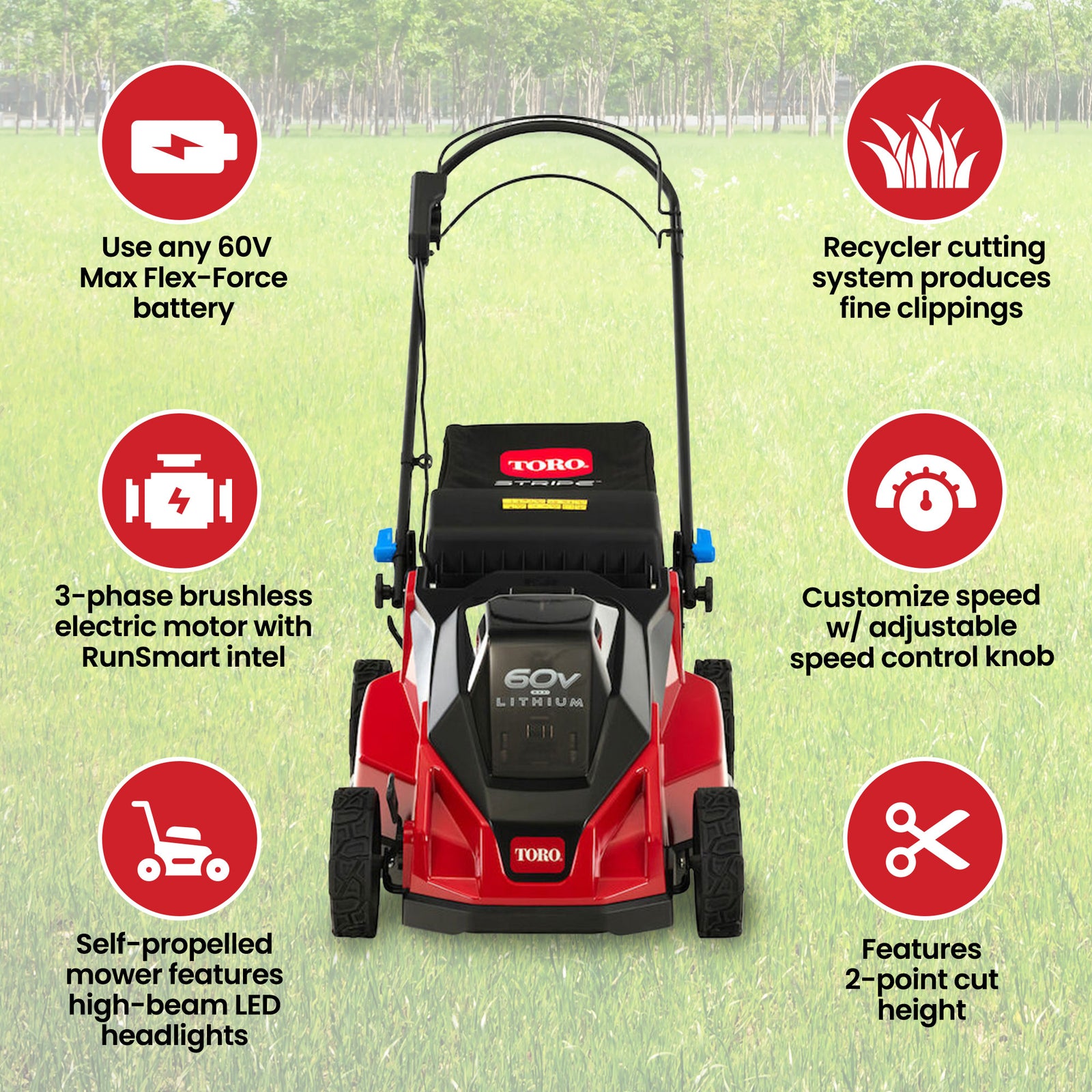 Toro 60-Volt 21-Inch Stripe Electric Self Propelled Mower w/Headlights (Used)