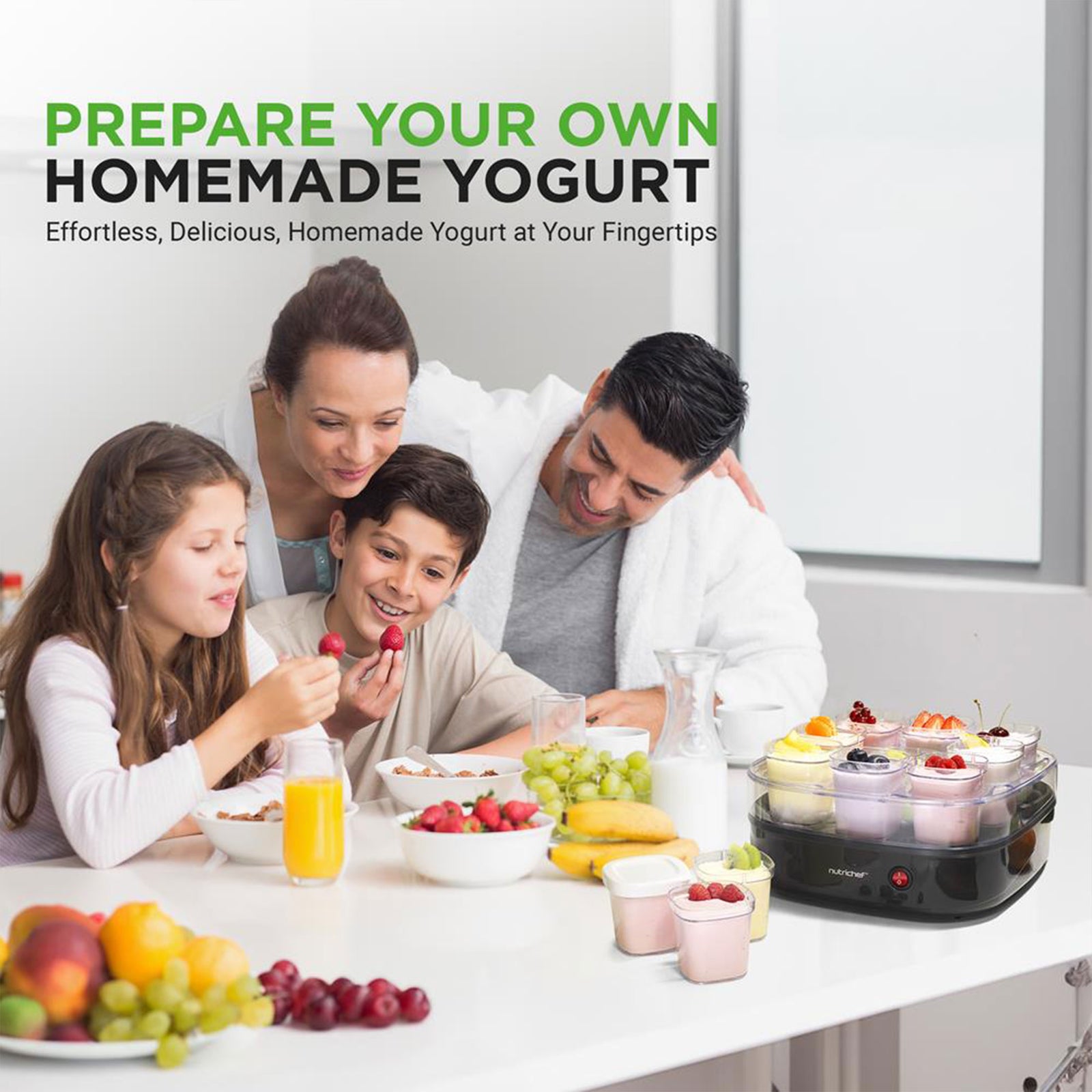 NutriChef Temperature Control 9 Cups Greek Yogurt Maker Machine 45 Ounces, Black