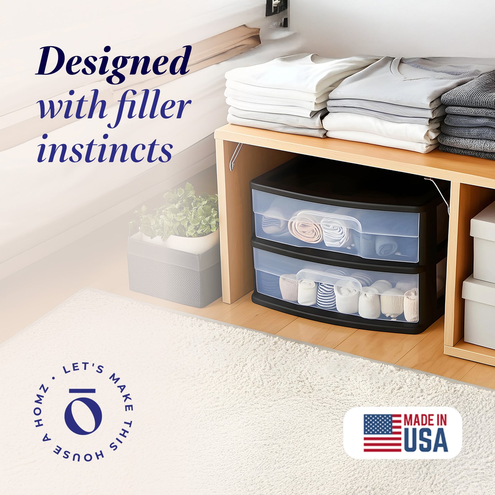Homz Plastic 2 Drawer Medium Storage Cart, Black Frame with Clear Drawer, 2 Pack