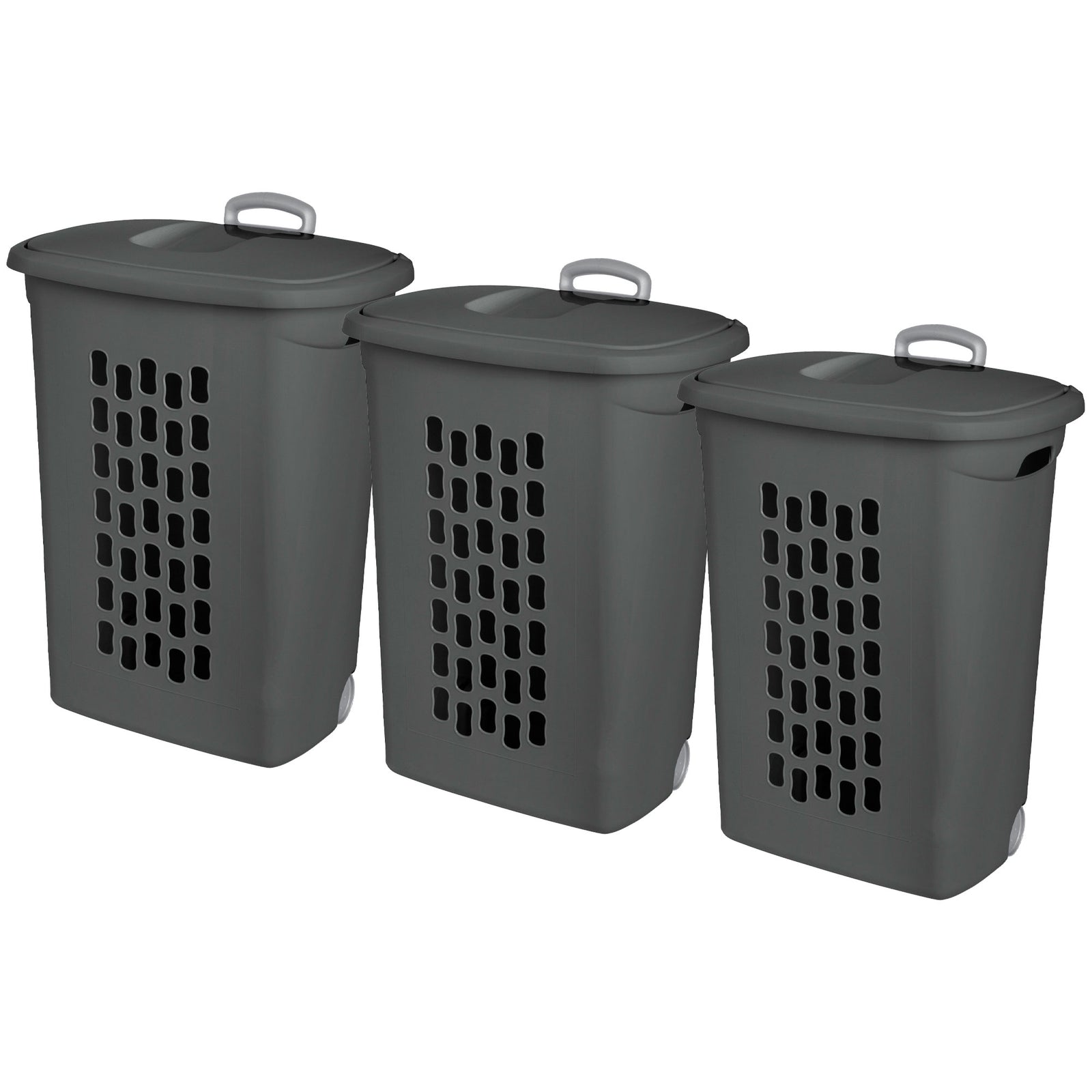 Sterilite Ultra Wheeled Hamper, Laundry Basket with Lid and Handle, Grey, 3 Pack