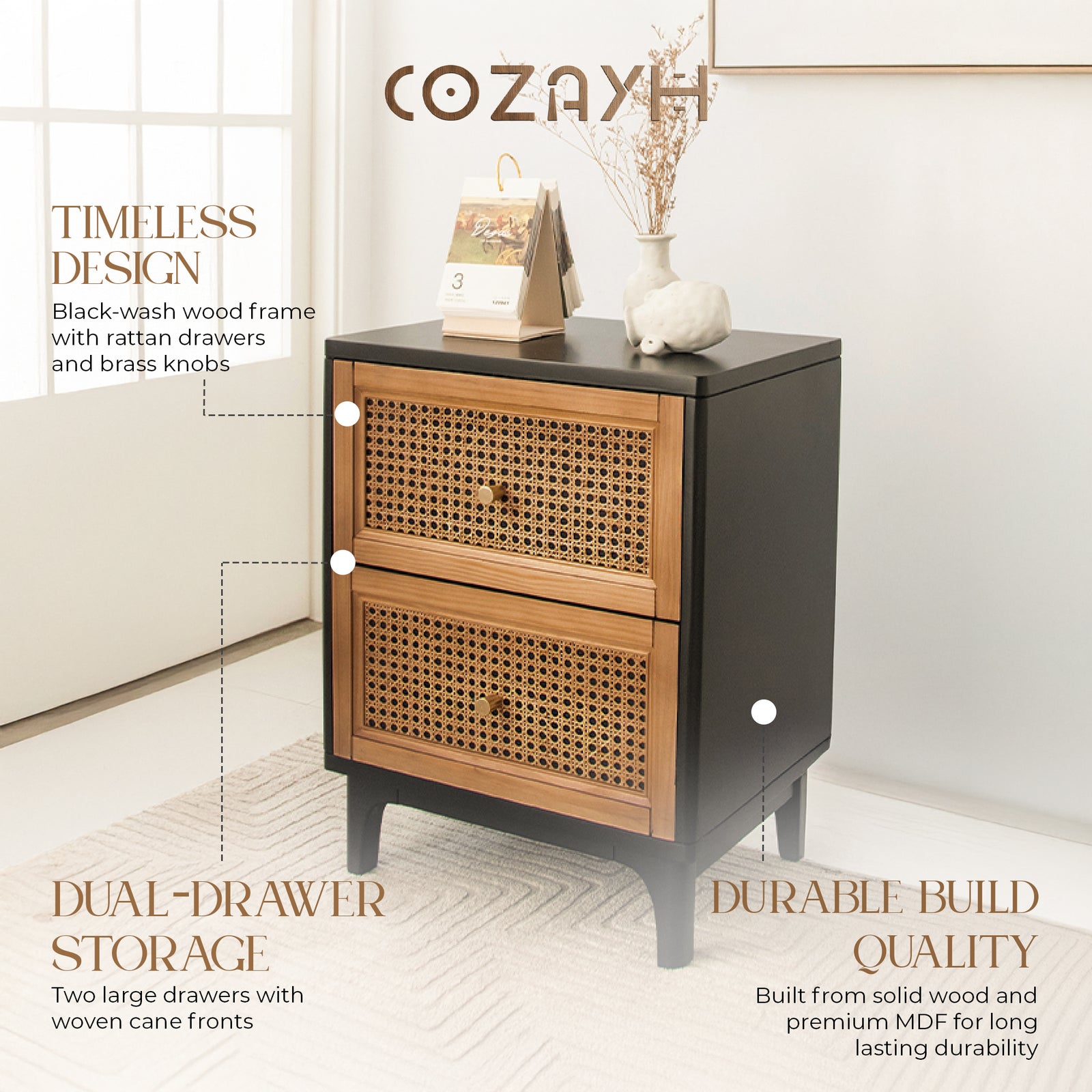 COZAYH Farmhouse 2 Drawer Bed Nightstand w/ Charging Station, Burl Wood, Natural