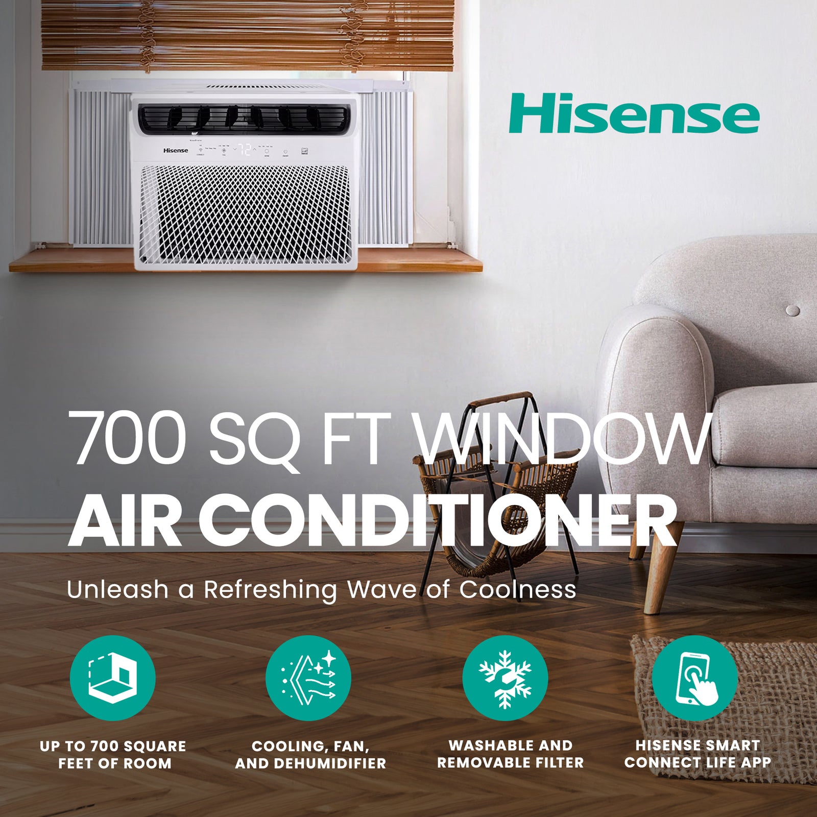 Hisense 700 Sq ft Air Conditioner w/Remote, 3 Modes & 4 Way Air Direction (Used)