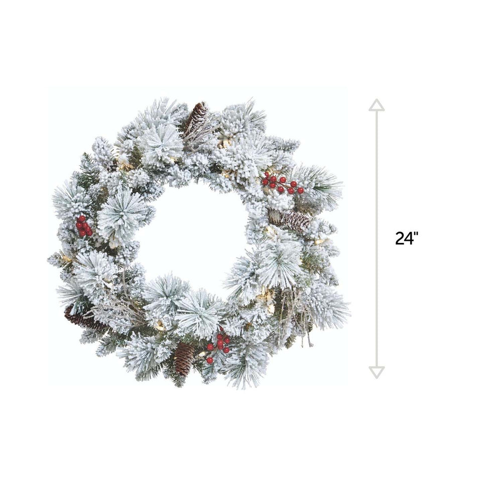 NOMA Snow Dusted 24" Pre-Lit Battery Operated Artificial Wreath (Open Box)