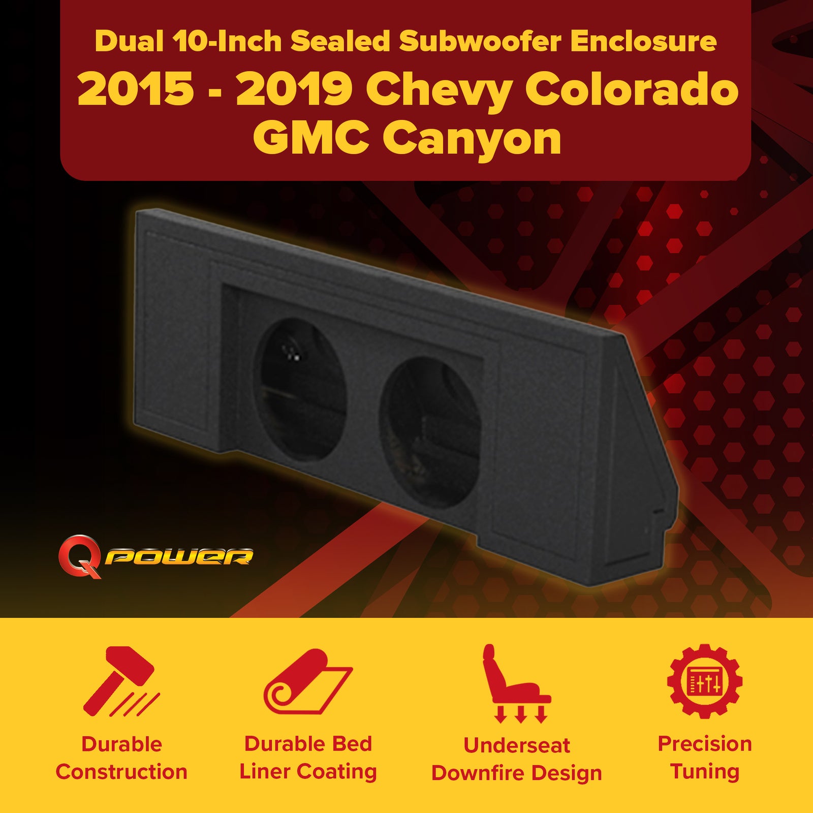 Q Power Dual 10-Inch Sealed Subwoofer Enclosure Chevy Colorado/GMC Canyon, Black