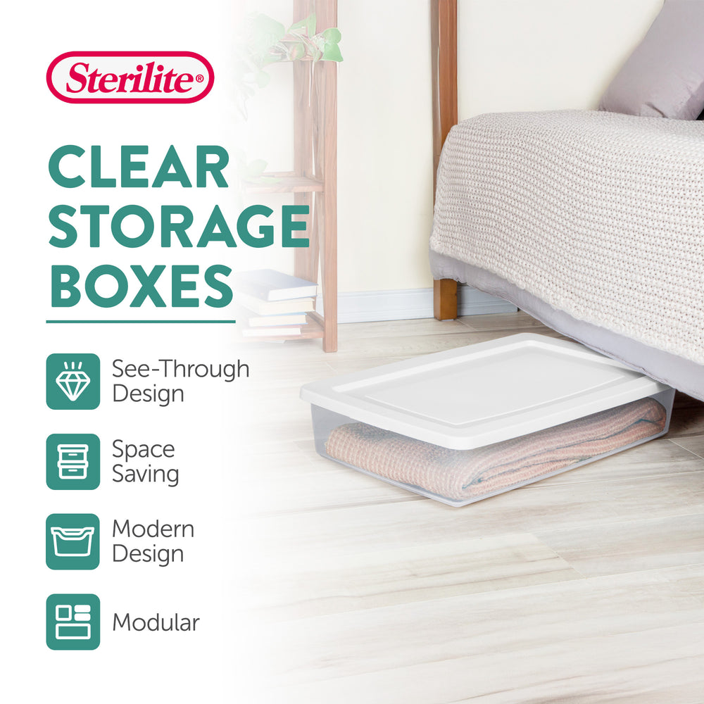 Sterilite 12Qt Storage Boxes, Clear Plastic Containers with Lid, Set of 24, Mint