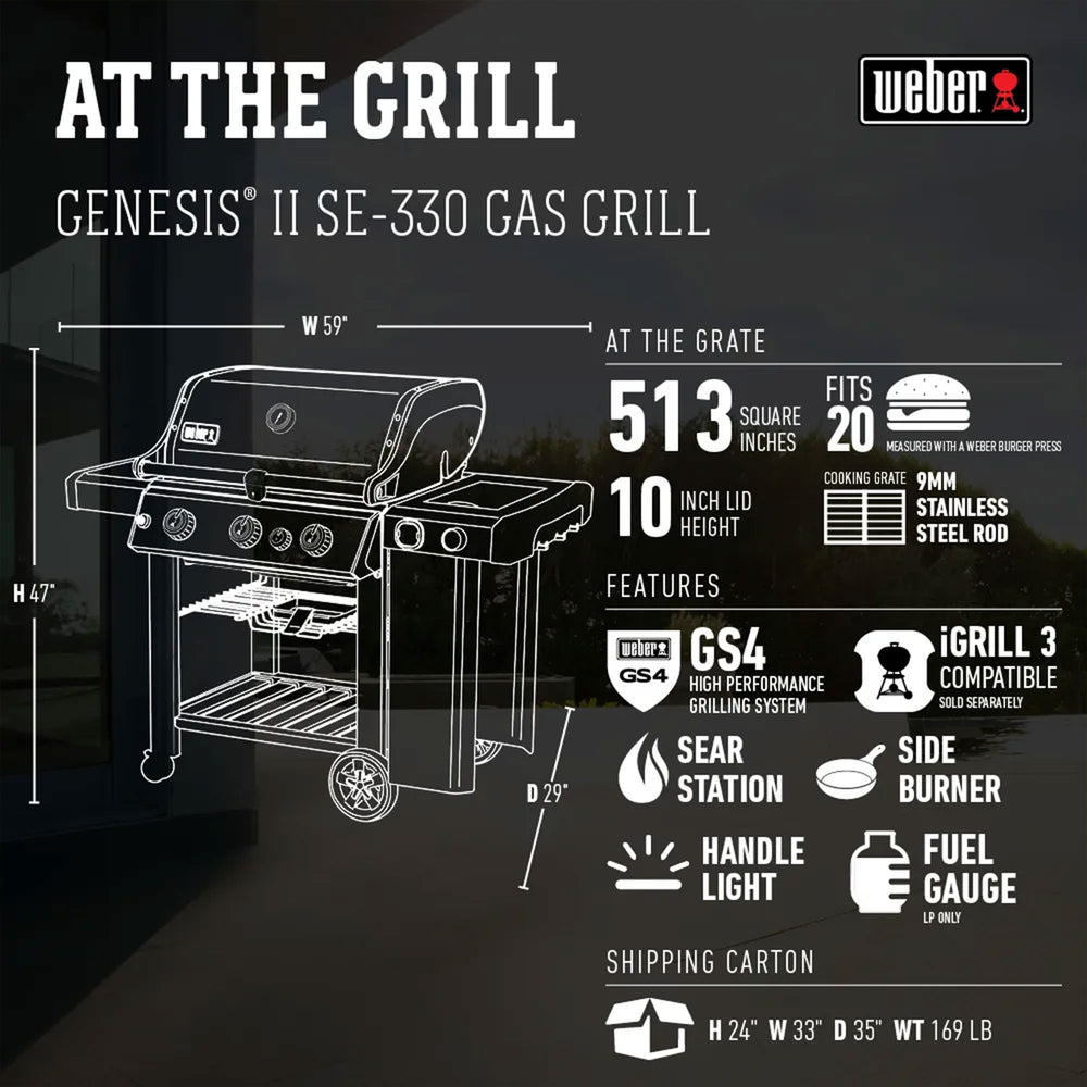 Weber Genesis II SX-335 Stainless Steel 3 Burner Liquid Propane Gas Smart Grill