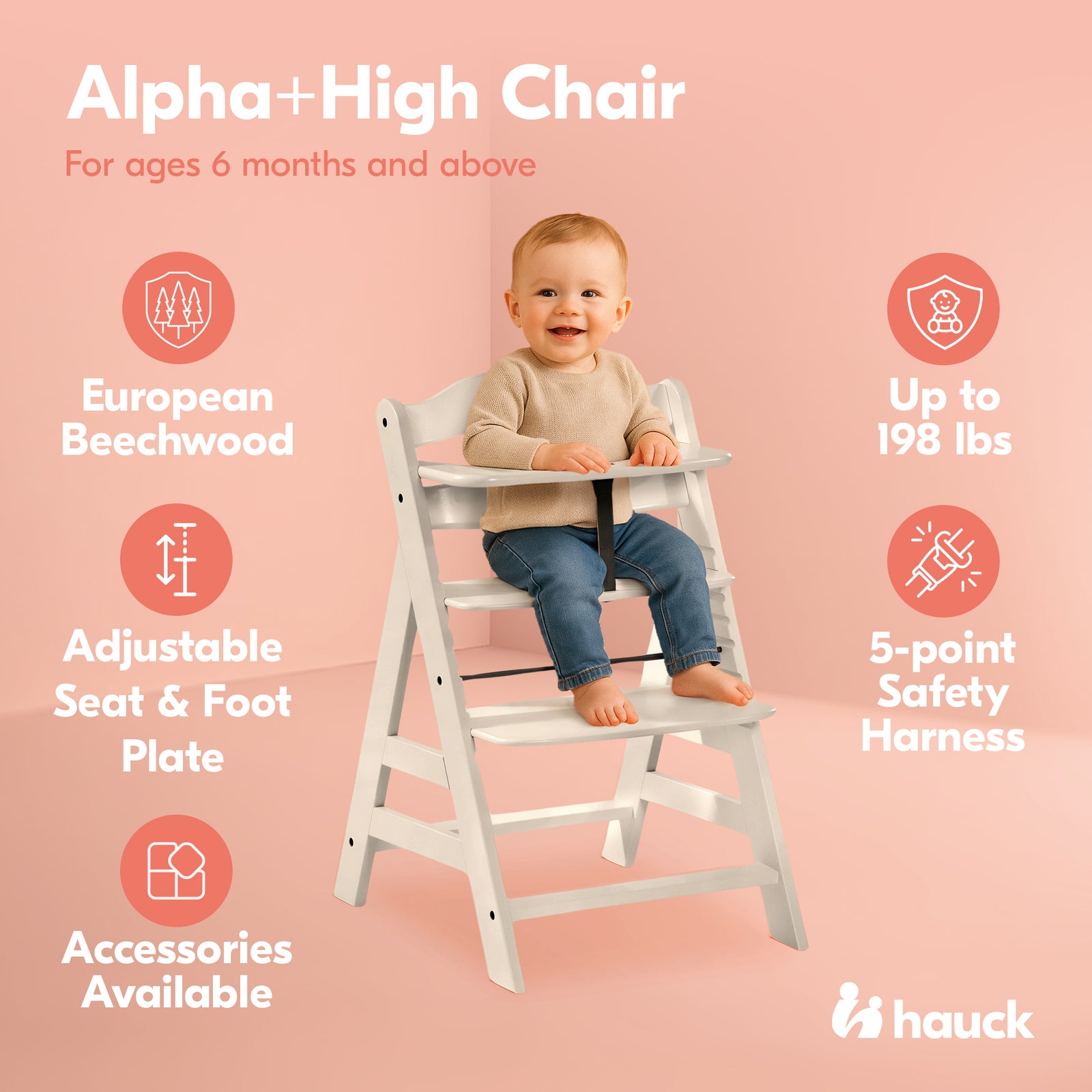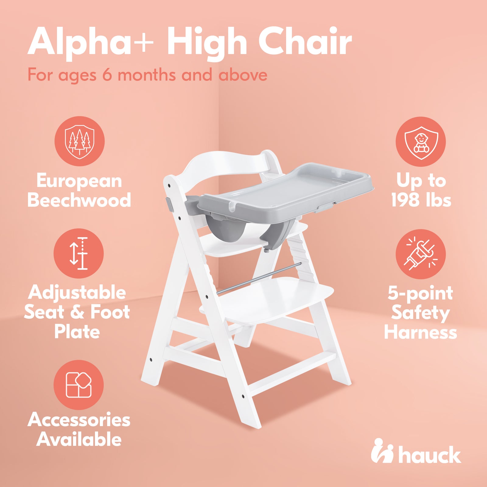 hauck Alpha+ Adjustable Booster High Chair and High Chair Tray Table, White