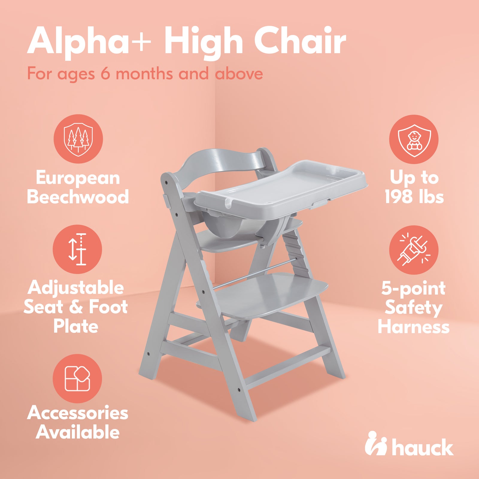 hauck Alpha+ Adjustable Booster High Chair and High Chair Tray Table, Grey