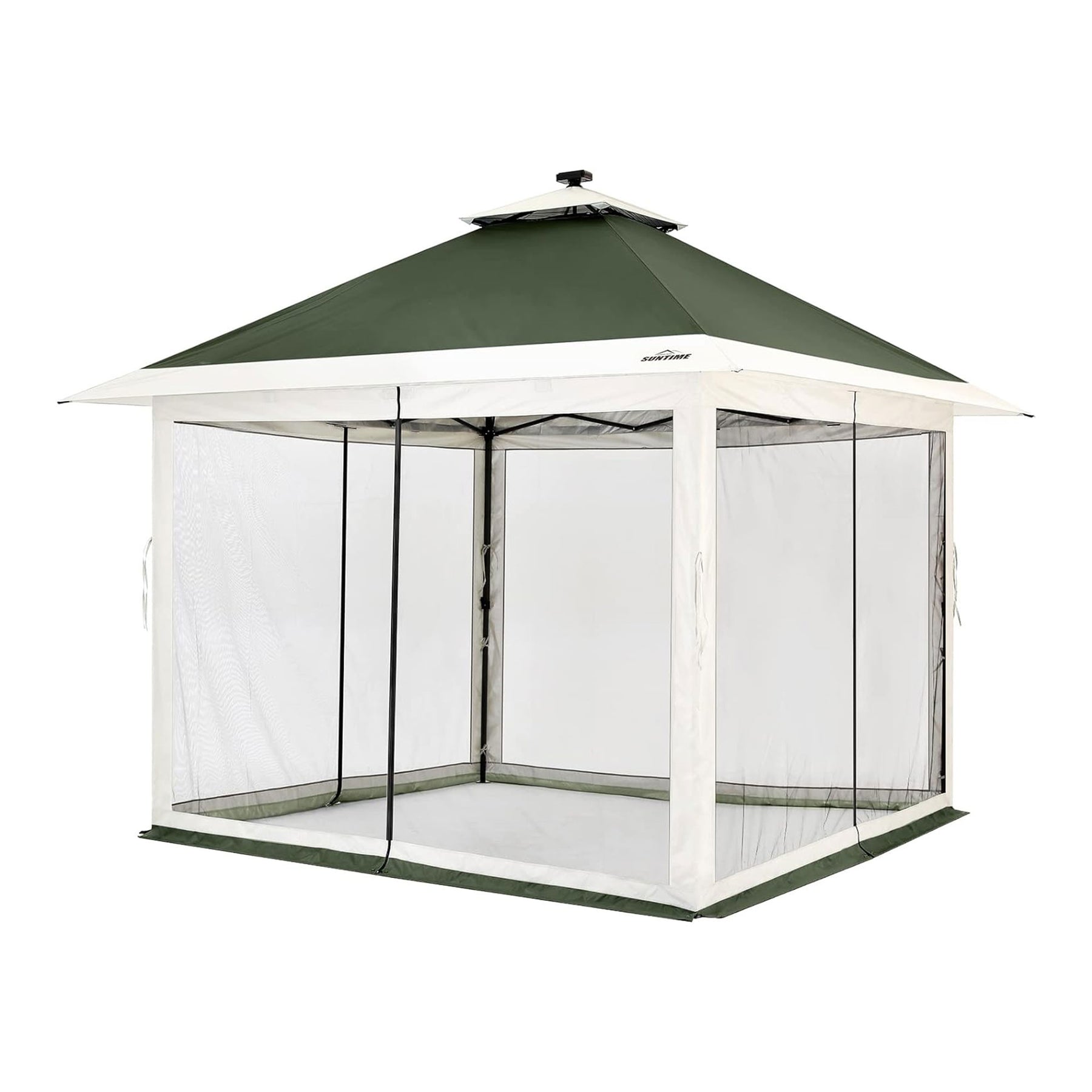 12x12 Pop Up Gazebo Solar Light Screen Canopy Tent Cover, Green (Open Box)